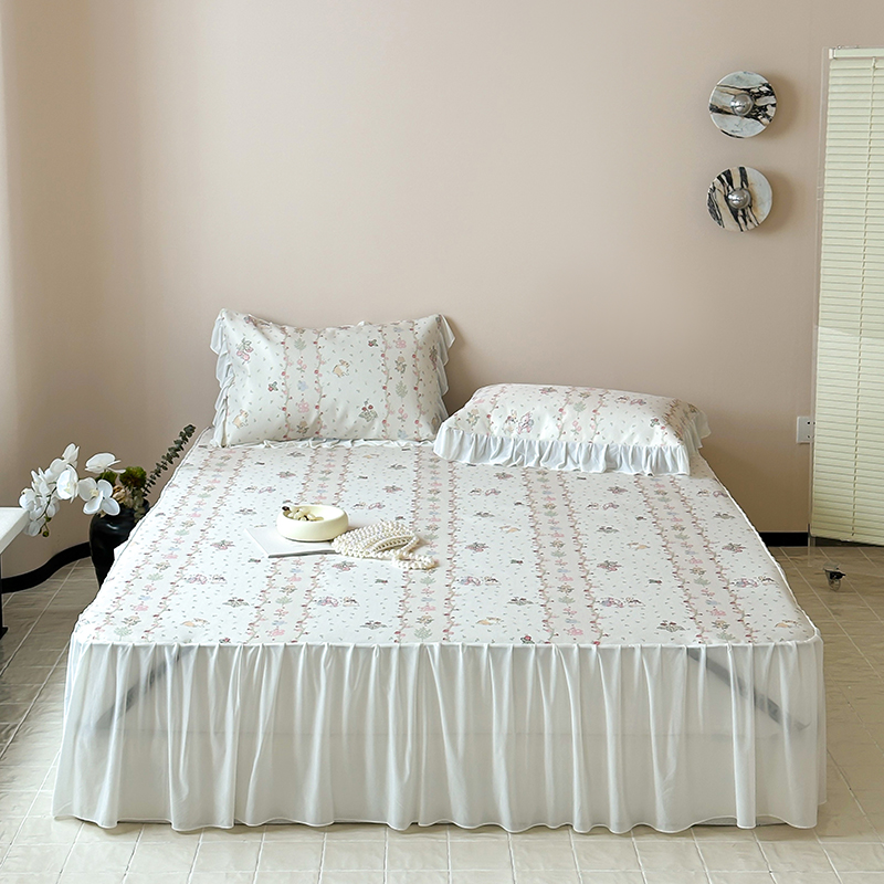 (总)昔可 2024新款A类900D仙仙雪纺纱床裙款冰丝席三件套