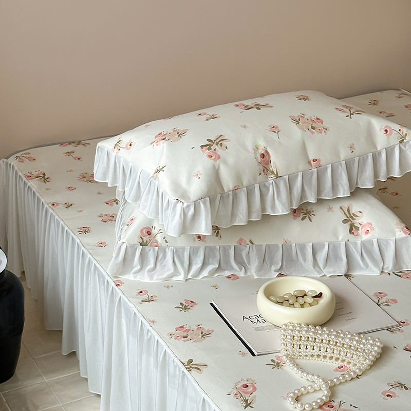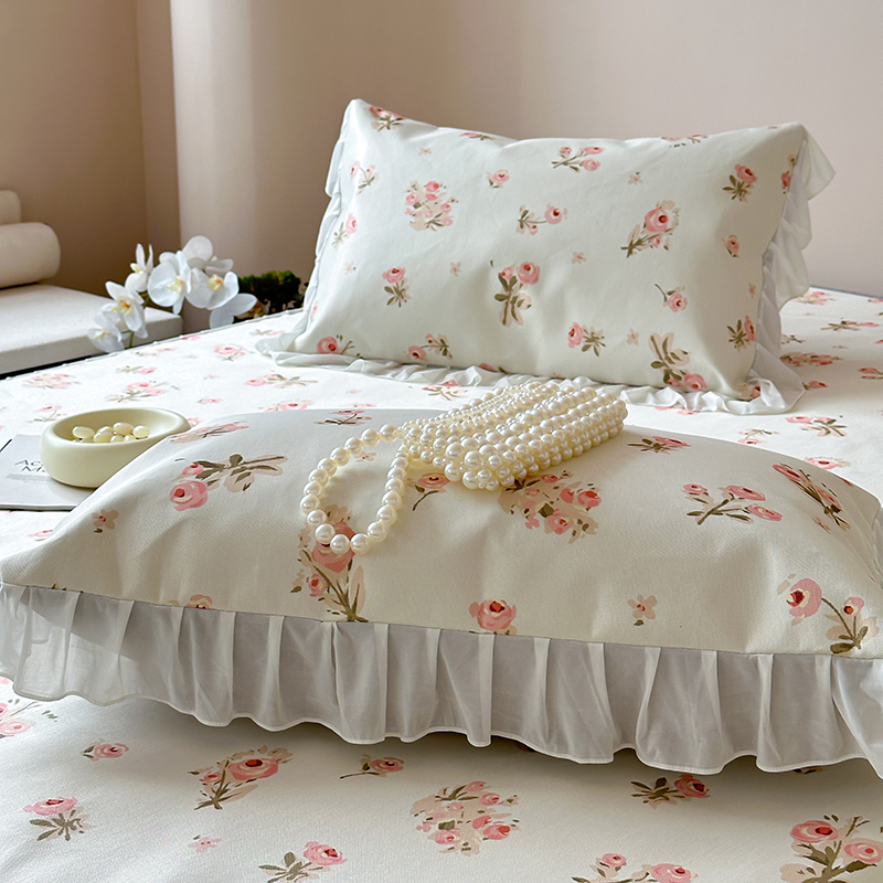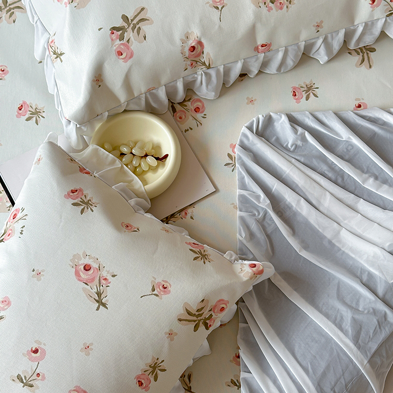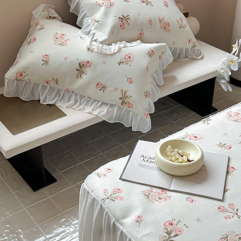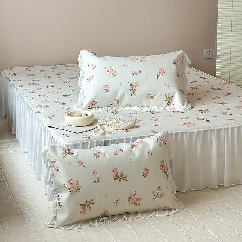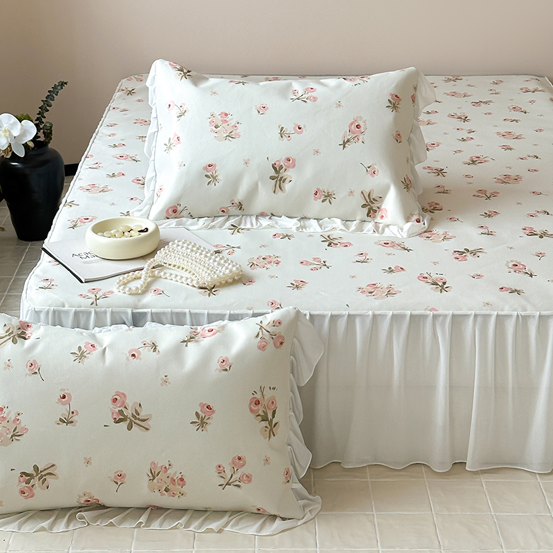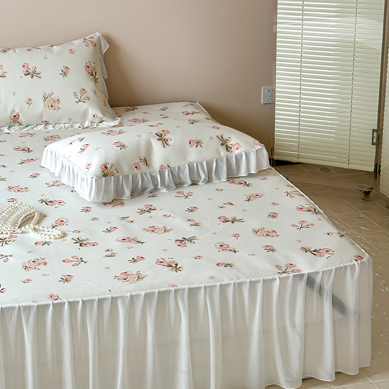 商品名称:昔可 2024新款A类900D仙仙雪纺纱床裙款冰丝席三件套 韩系碎花