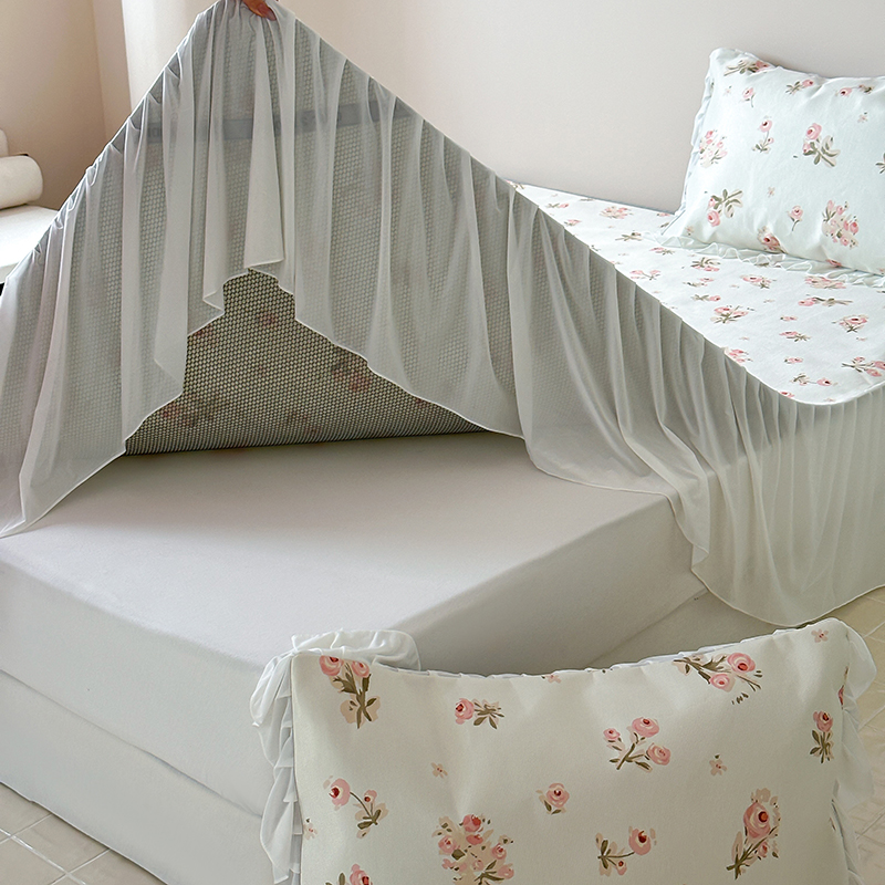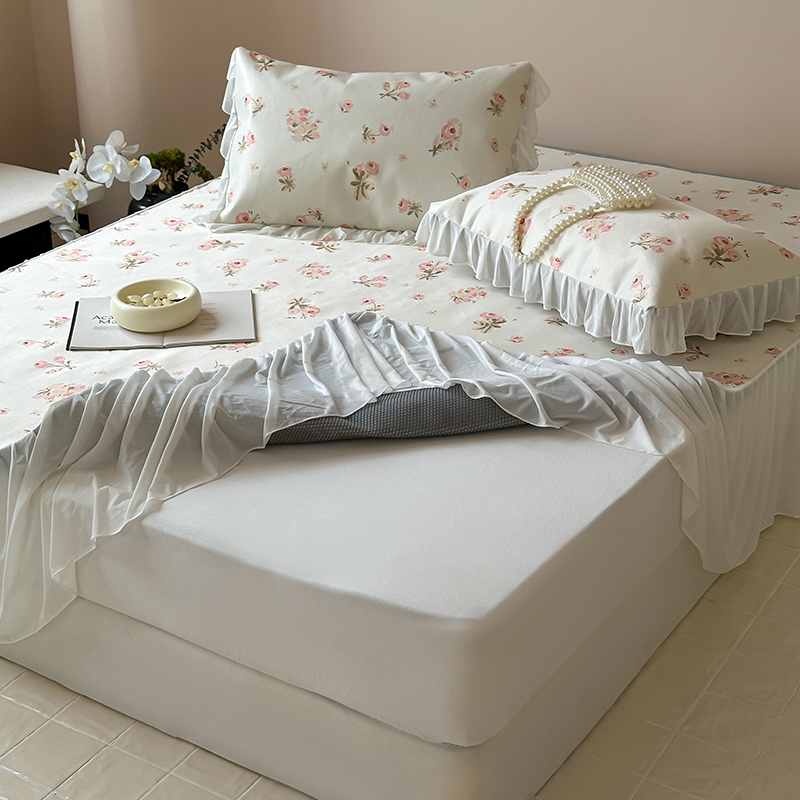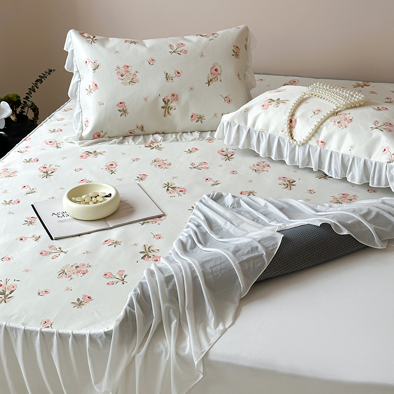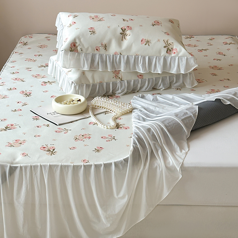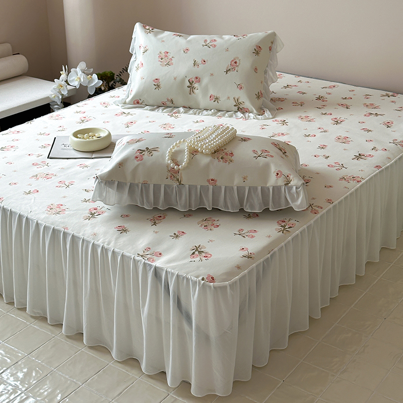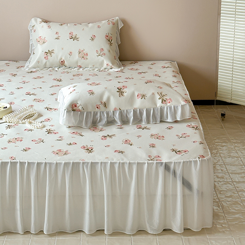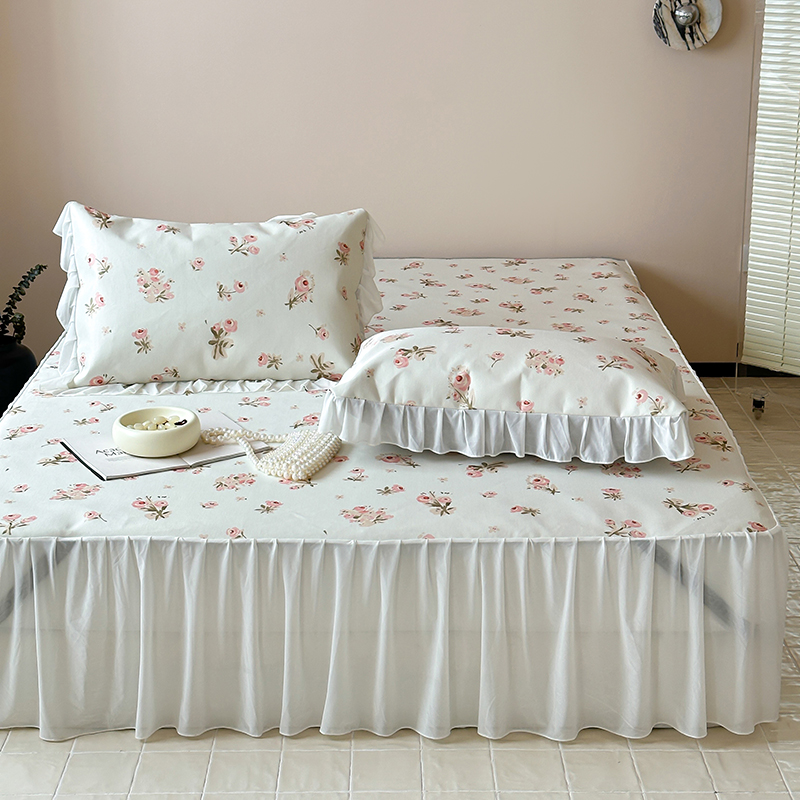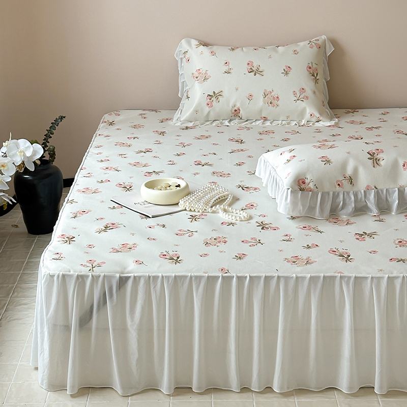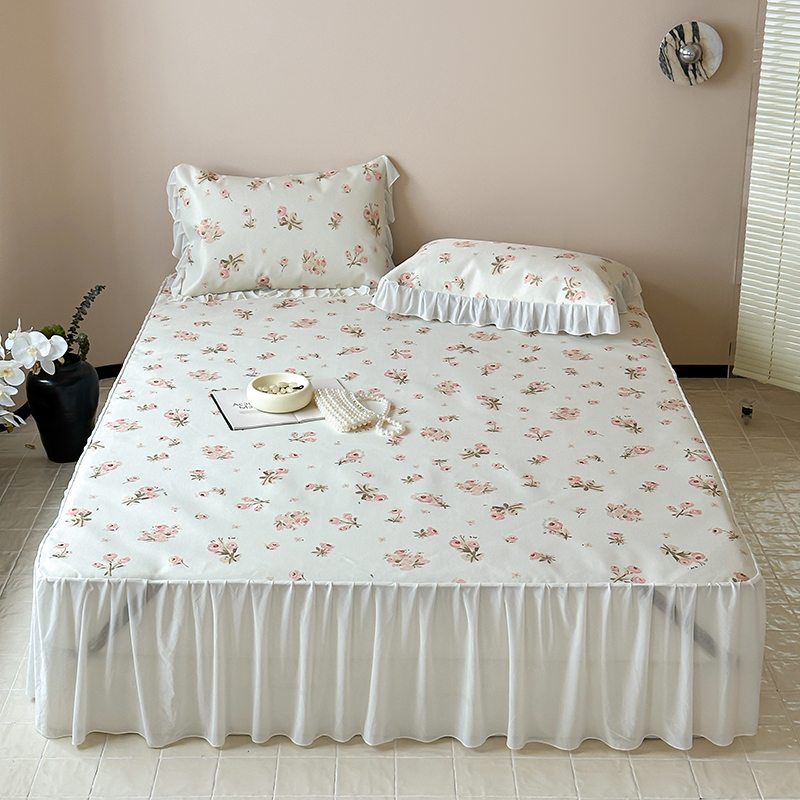 昔可 2024新款A类900D仙仙雪纺纱床裙款冰丝席三件套 韩系碎花