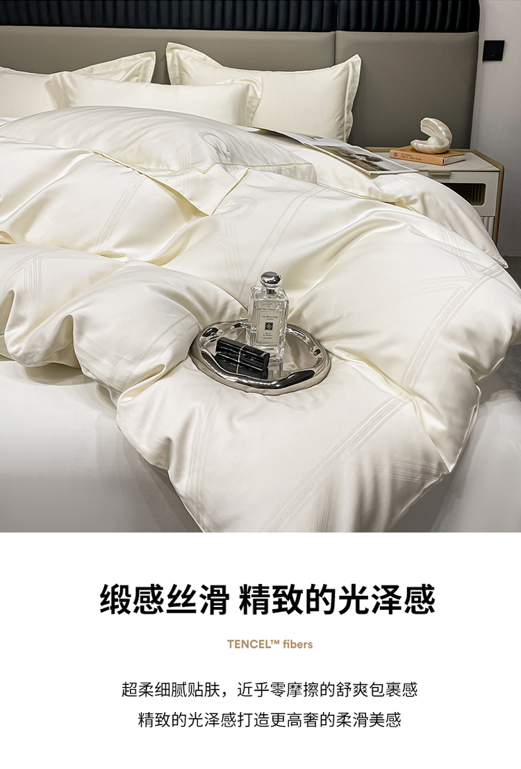 当前位置: 91家纺网 > 商品网购 > 床品套件 > 四件套 > 莱赛尔四件套 > 艾迪尚家纺 2025新款天丝棉提花四件套 莫里卡 雪域白