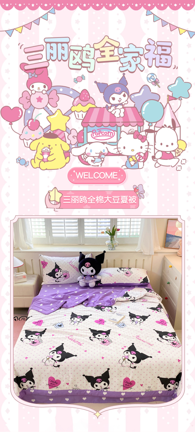 商品名称:博雅 2024新款全棉三丽鸥夏被(要买家秀联系客服) 甜筒库洛米