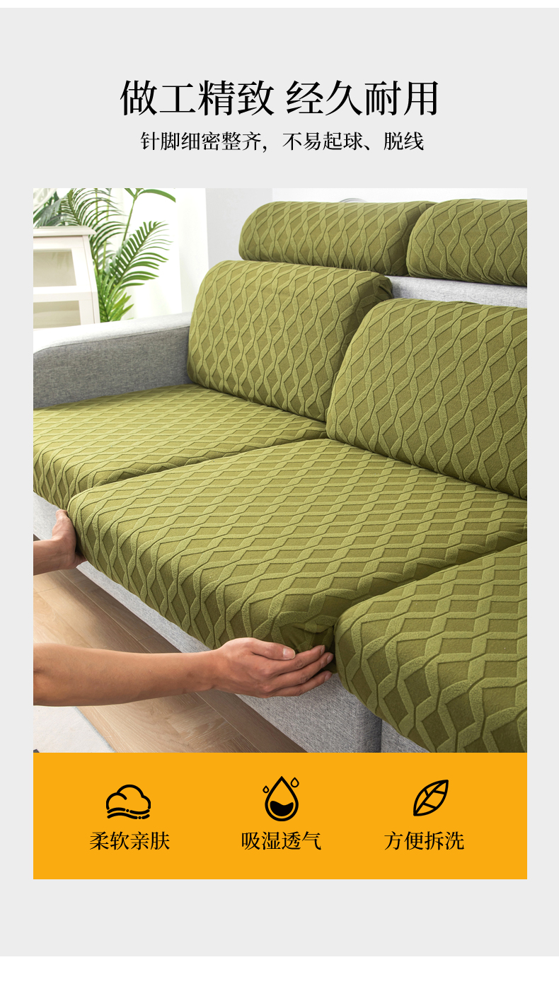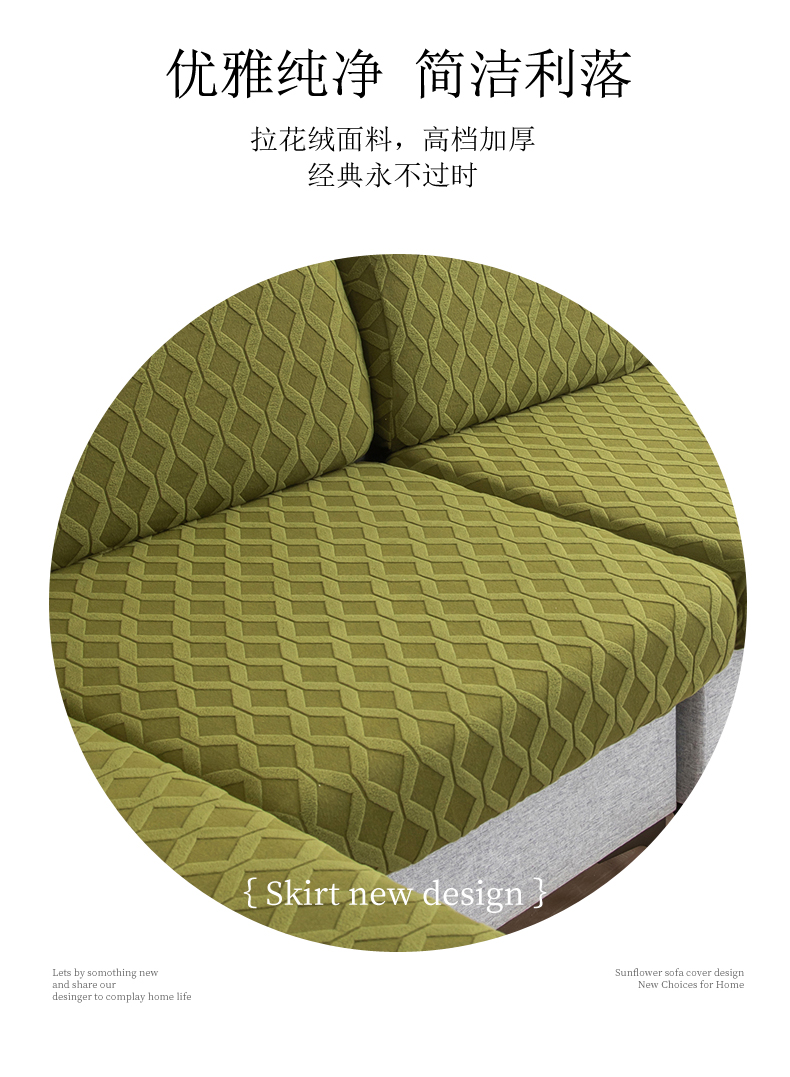 当前位置: 91家纺网 > 商品网购 > 居家布艺 > 坐垫/椅垫/沙发垫 > 沙发垫 > 千彤沙发垫 2024新款常规款拉花菱形格沙发套系列 橄榄绿