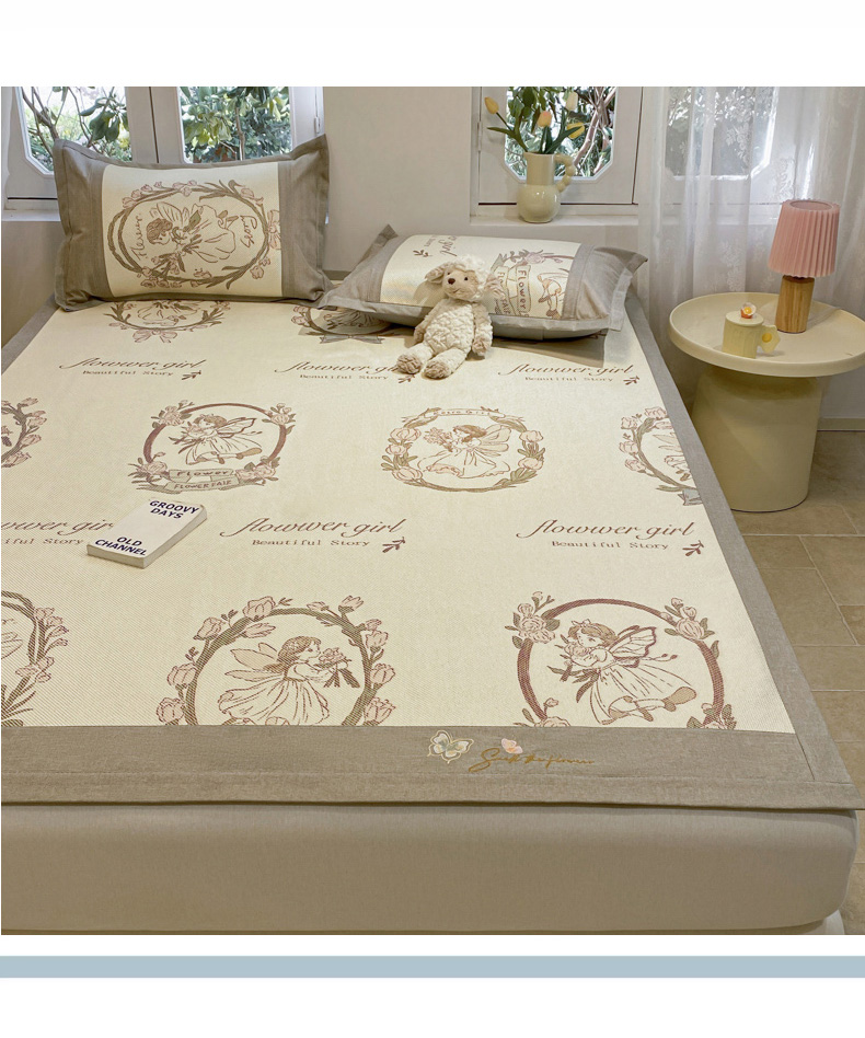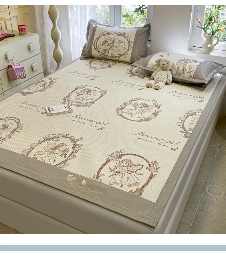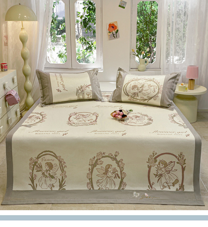 慕澄2024新款A类时尚印花刺绣冰藤凉席 床笠款-花仙子