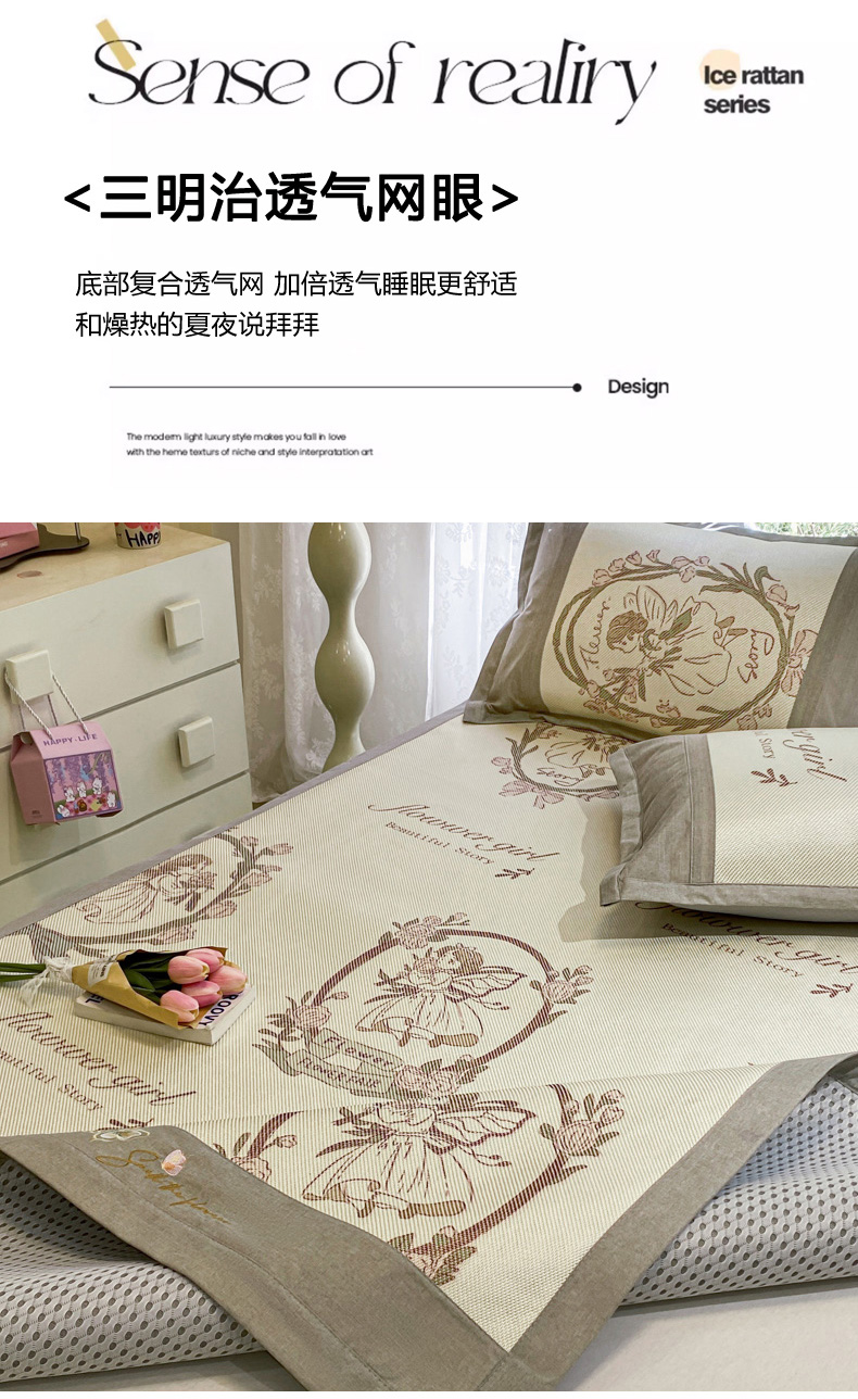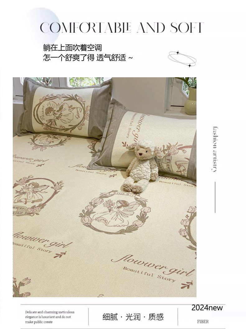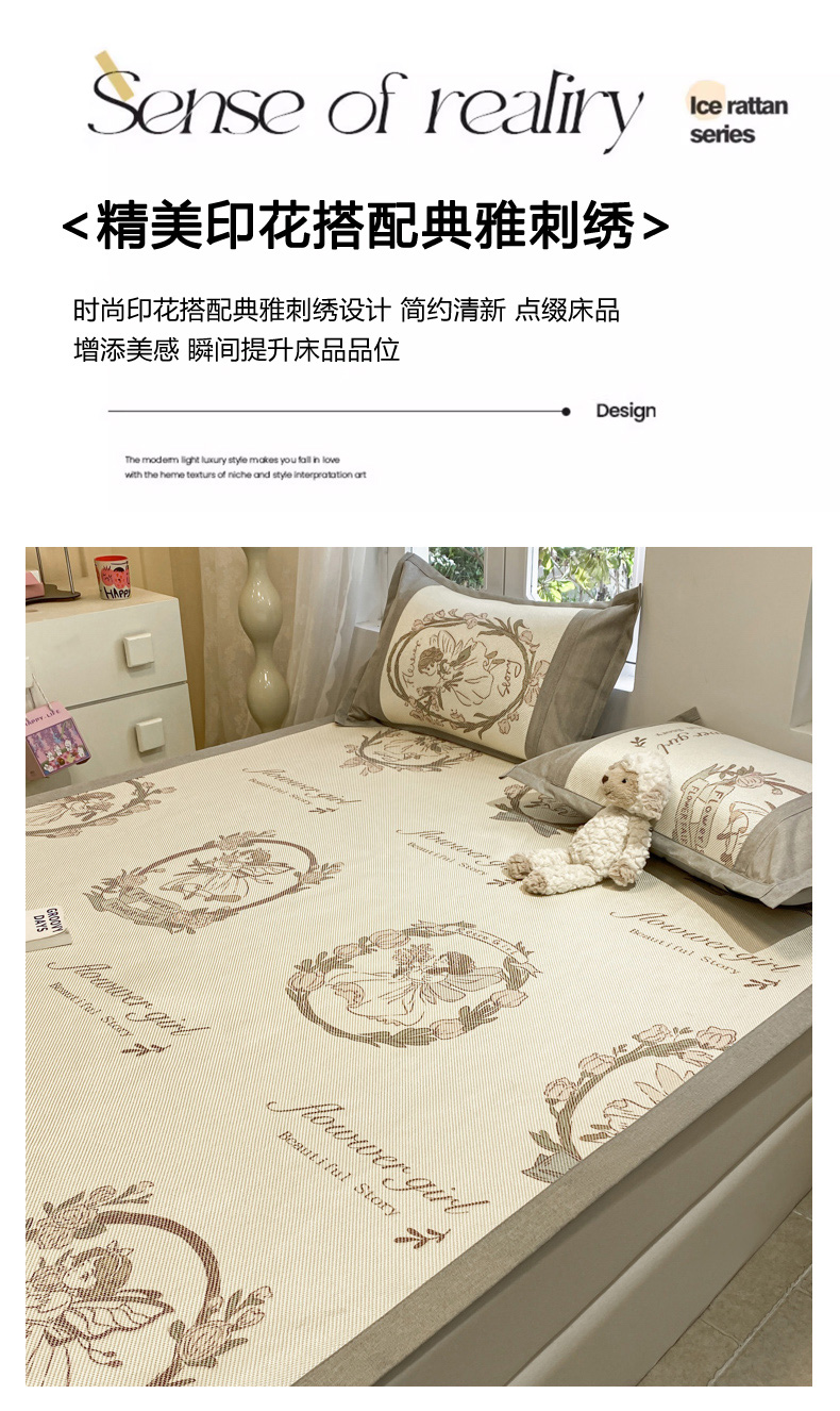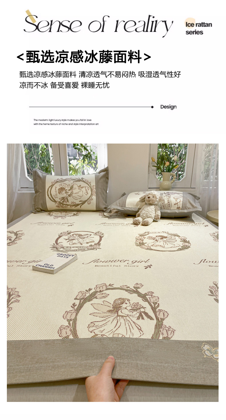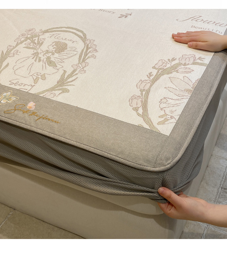 商品名称:慕澄2024新款A类时尚印花刺绣冰藤凉席 床笠款-花仙子