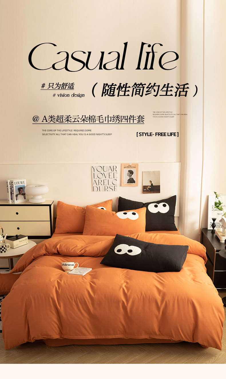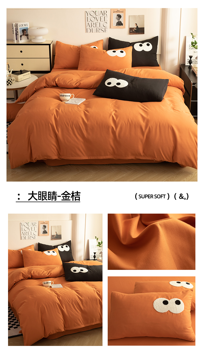当前位置: 91家纺网 > 商品网购 > 床品套件 > 四件套 > 毛巾绣四件套 > 妖妖家纺 2024新款超柔水洗棉毛巾绣四件套(眼睛) 大眼睛-金桔