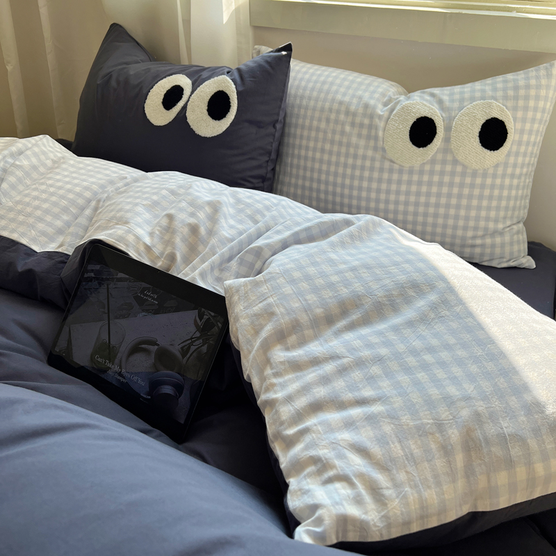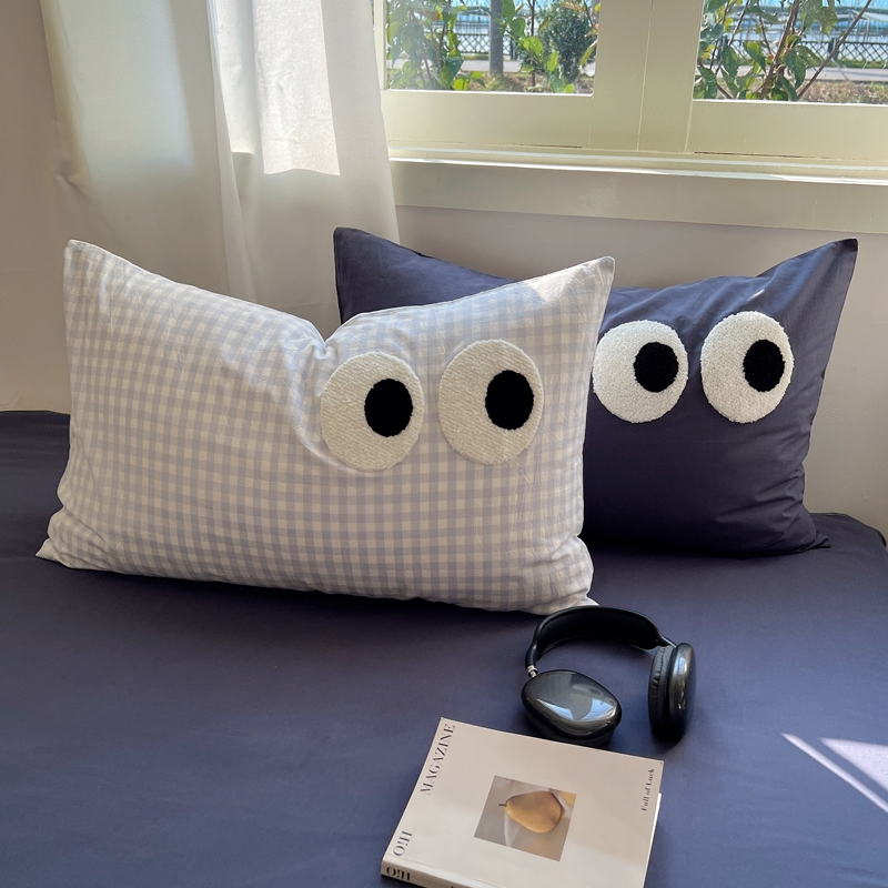 商品名称:盼季家纺 2024新款萌趣毛巾绣大眼睛枕套 大眼-藏青+蓝格