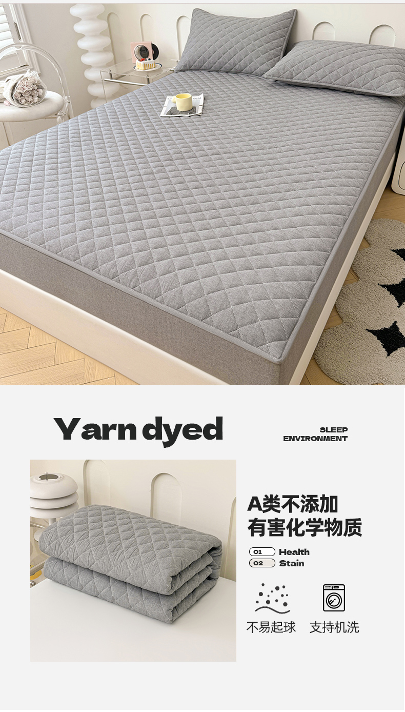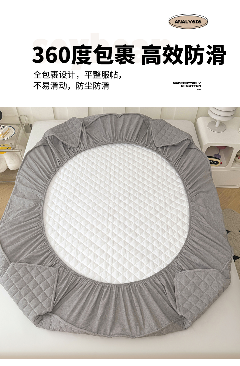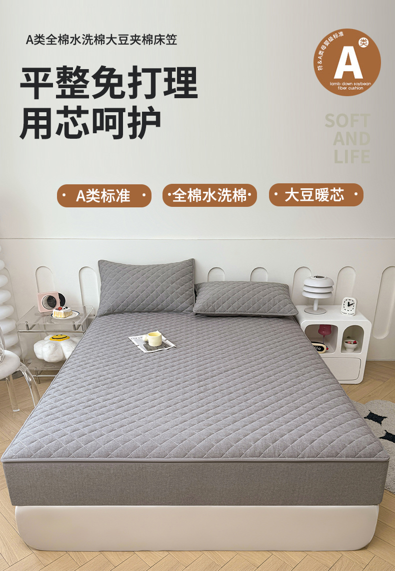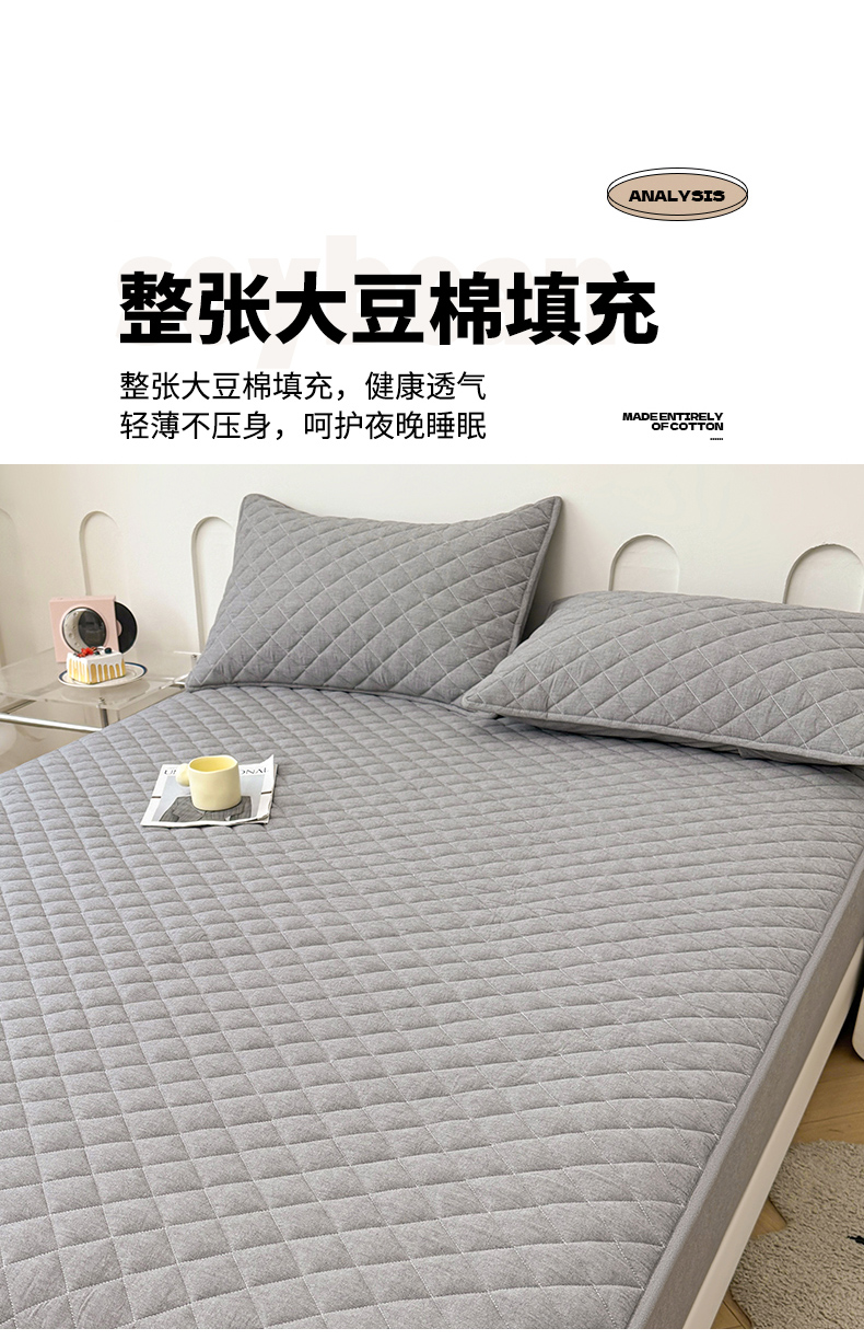 糯米猪家纺 2024新款全棉水洗棉大豆夹棉床笠 星辰灰