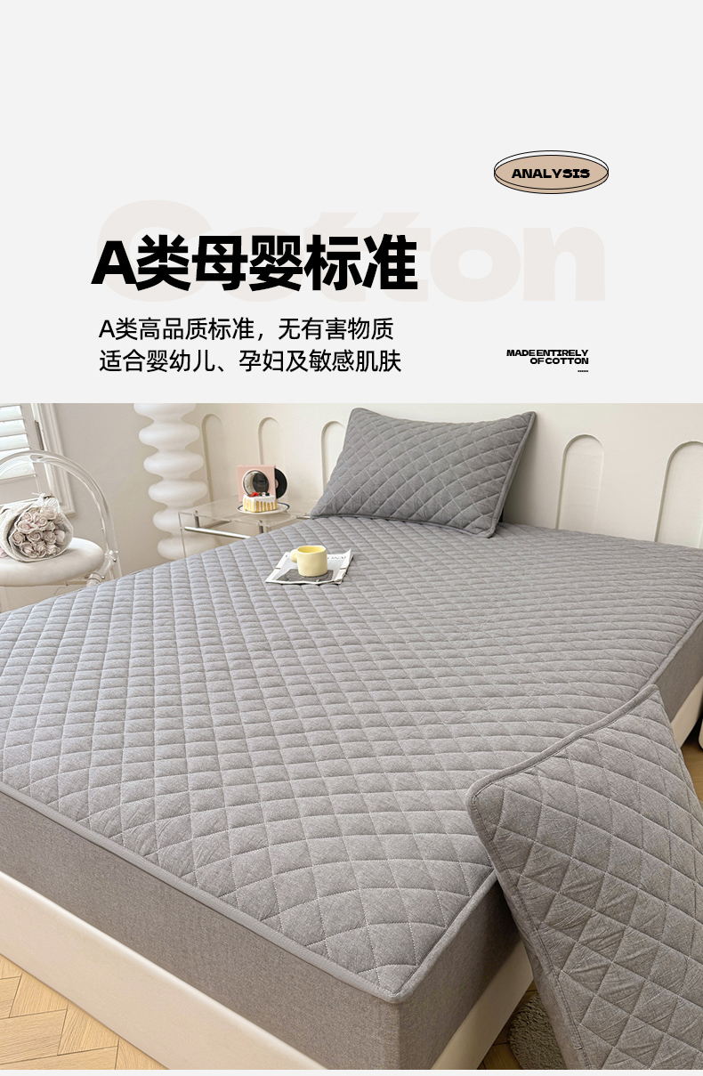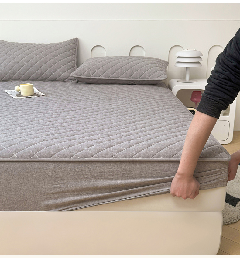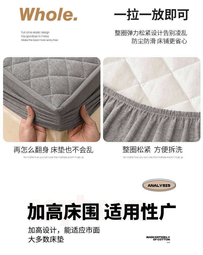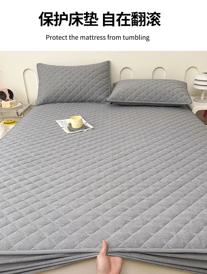 糯米猪家纺 2024新款全棉水洗棉大豆夹棉床笠 星辰灰