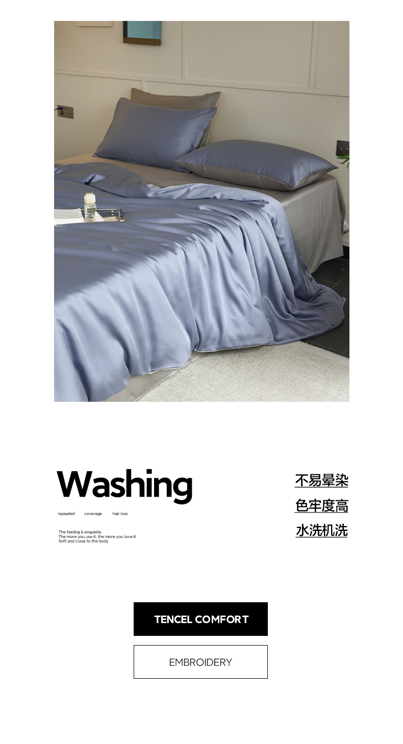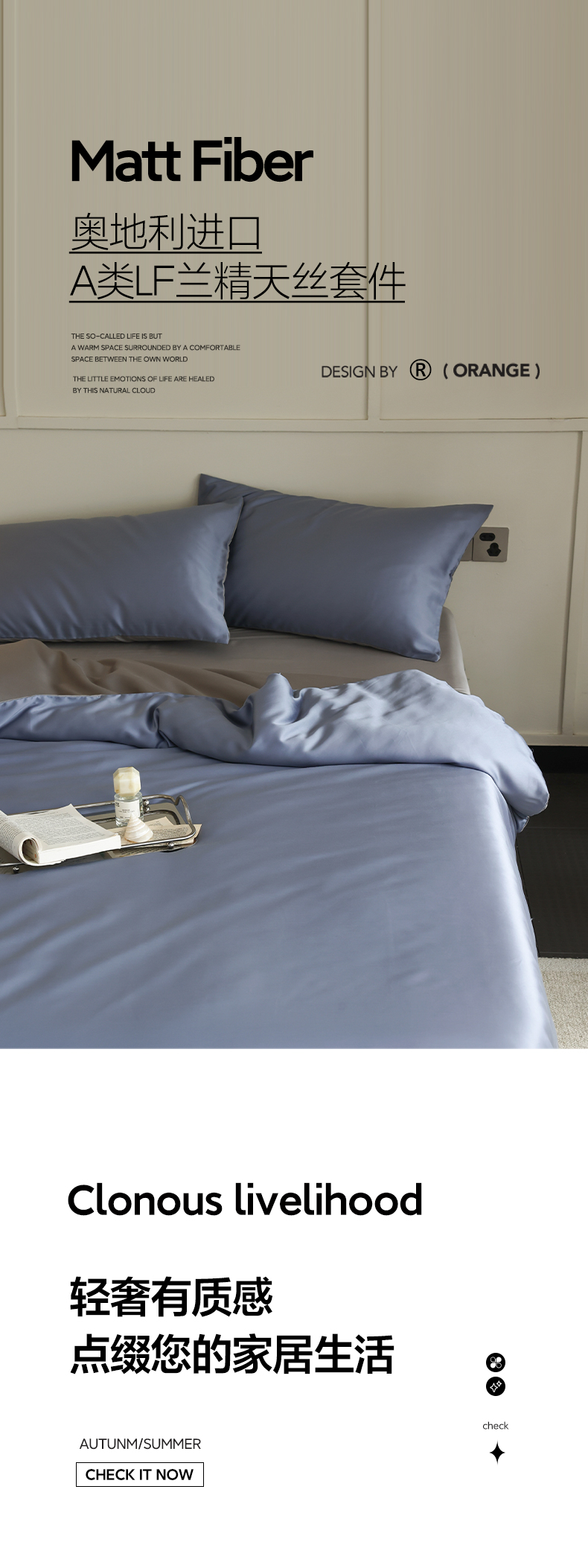 当前位置: 91家纺网 > 商品网购 > 床品套件 > 四件套 > 莱赛尔四件套 > 轩和 2025新款A类LF兰精天丝套件 劳伦蓝+伯爵灰
