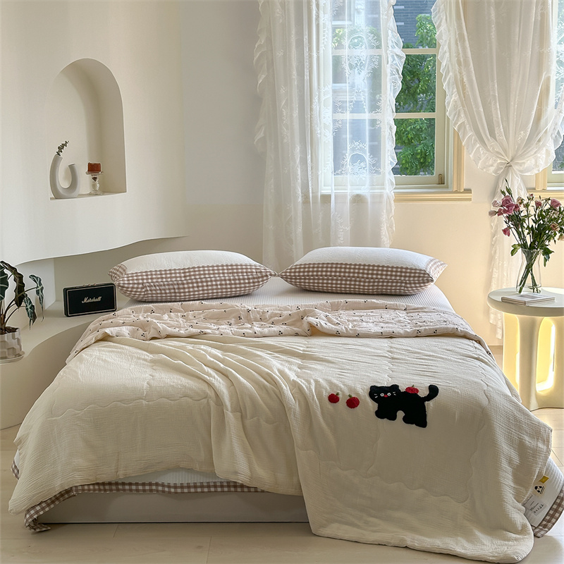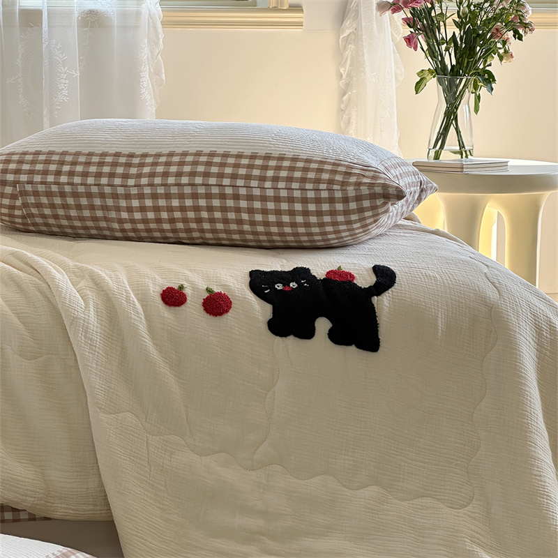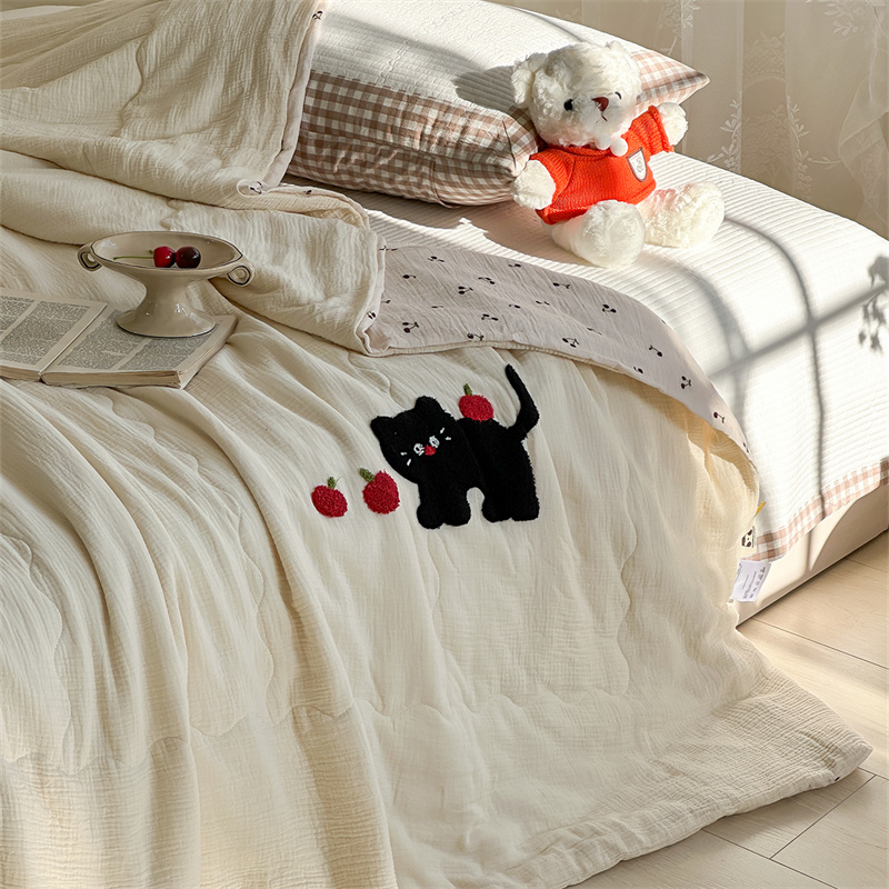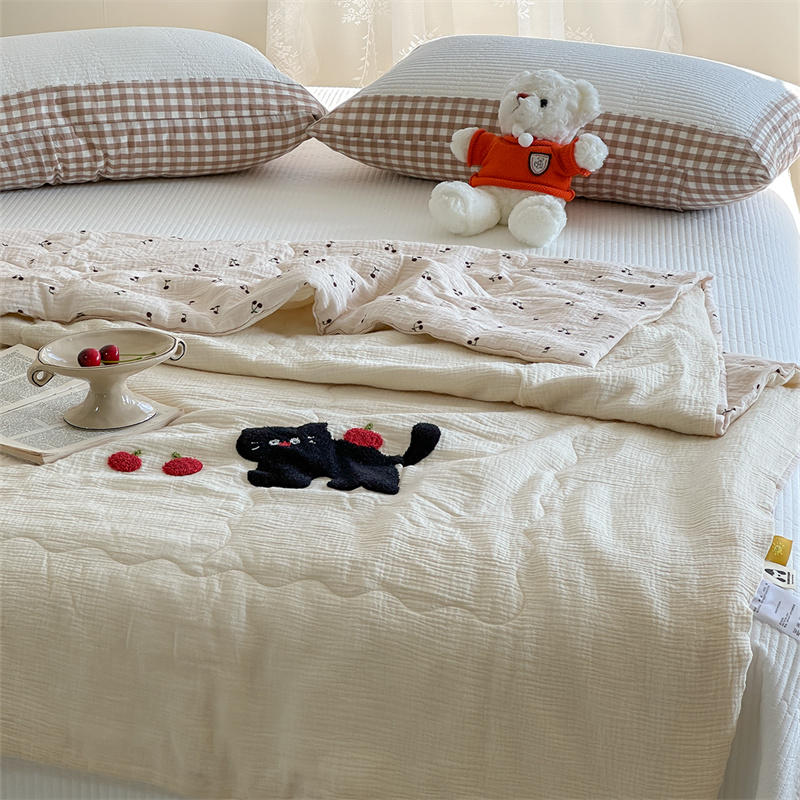 商品名称:洋铭区 2024新花型皱皱纱毛巾绣夏被 小猫果果