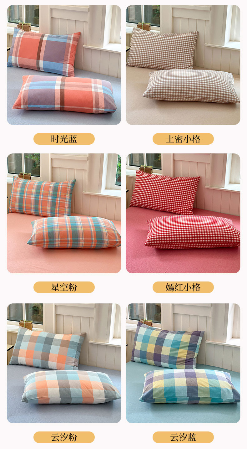 北欧良品 2024新款A类全棉色织水洗棉单枕套 土密小格