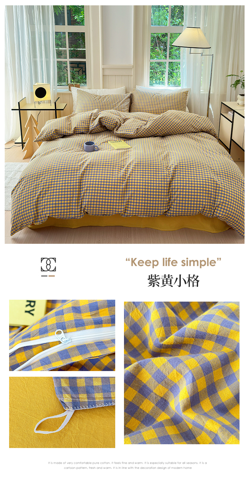 商品名称:北欧良品 2024新款A类全棉色织水洗棉单被套 紫黄小格