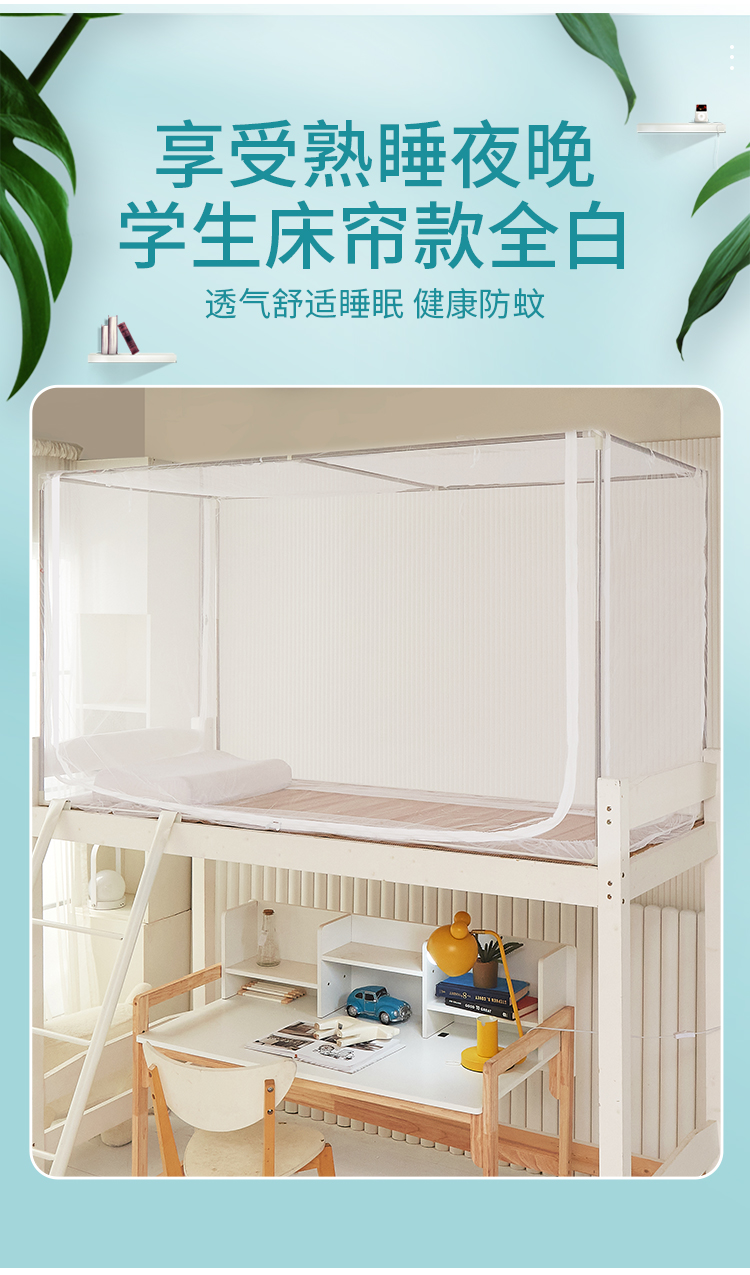 当前位置: 91家纺网 > 商品网购 > 床上用品 > 蚊帐 > 2024新款学生蚊帐大学生坐床拉链床白色帐纱款透明上下铺学生蚊帐 防尘白【只有蚊帐 不含支架】