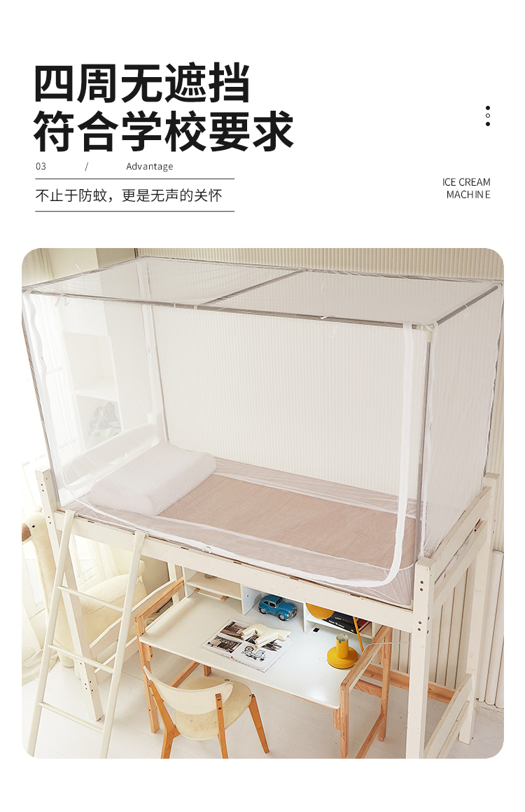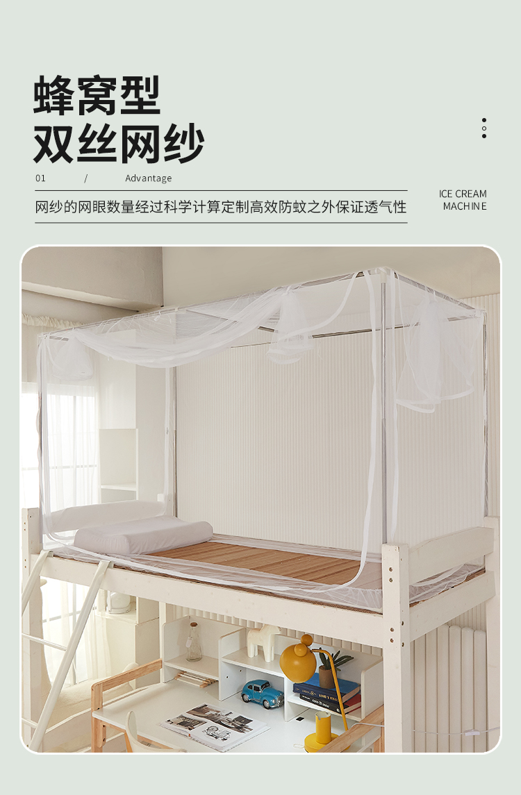 • 91家纺网 家纺一手货源 找家纺 2024新款学生蚊帐大学生坐床拉链床白色帐纱款透明上下铺学生蚊帐 防尘白【只有蚊帐 不含支架】