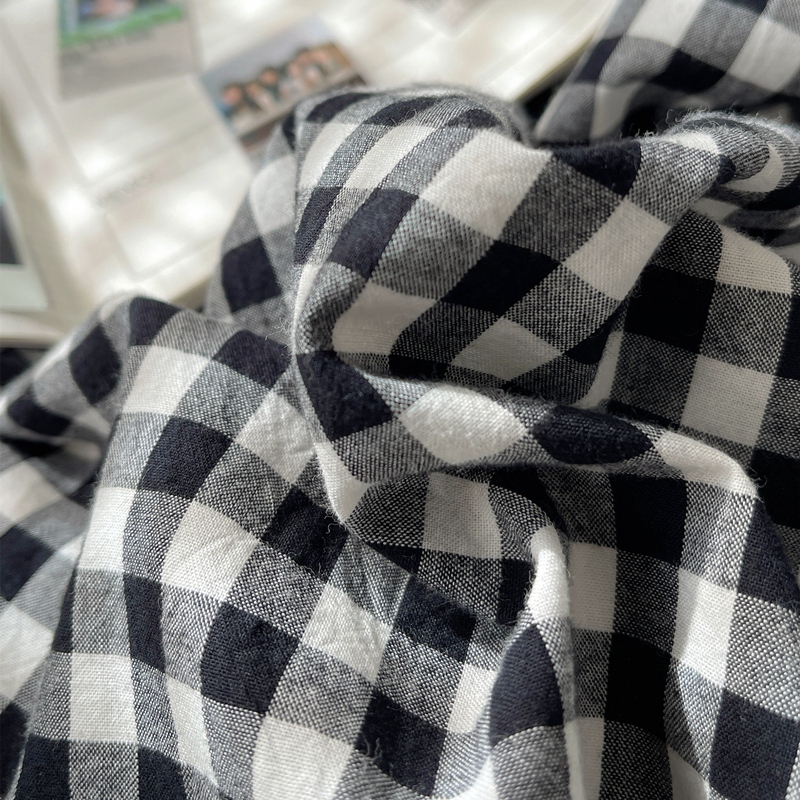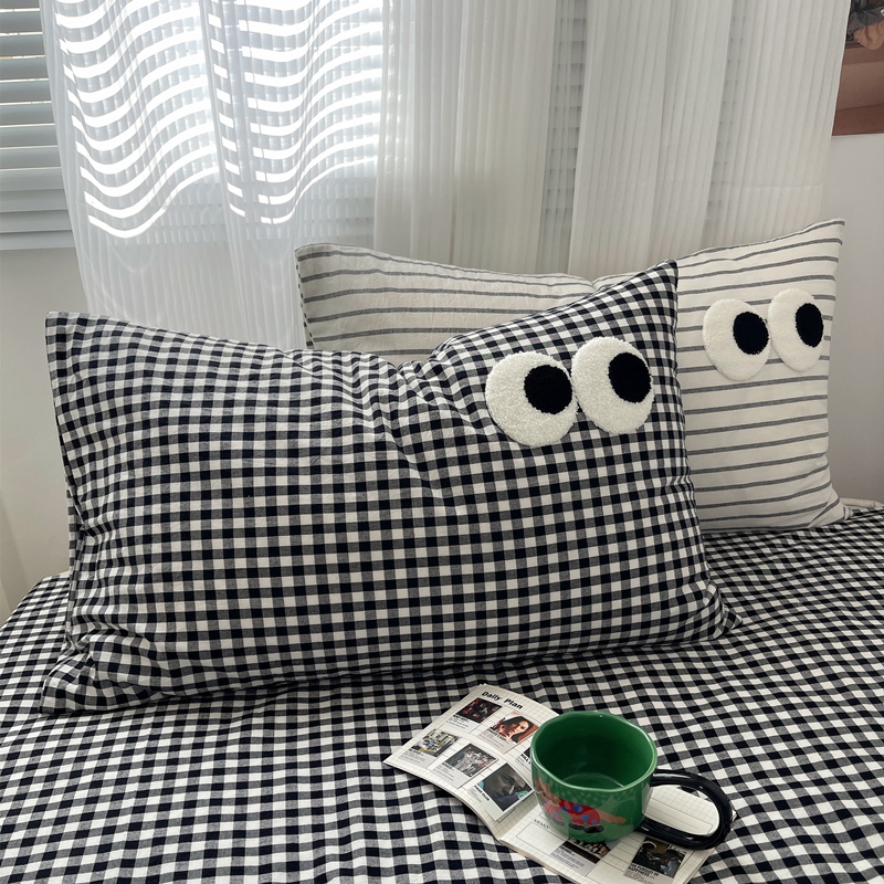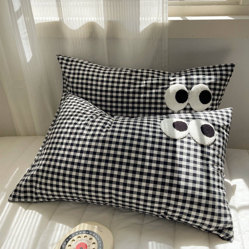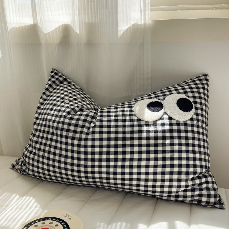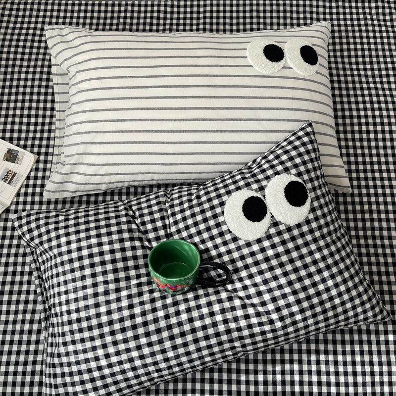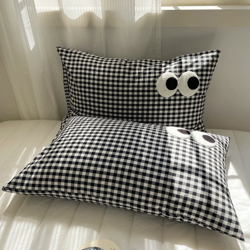丽涵家纺 2024新款色织水洗棉大眼毛巾绣-单品枕套 大眼小黑格