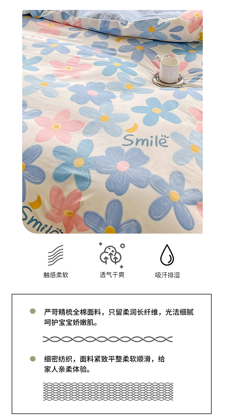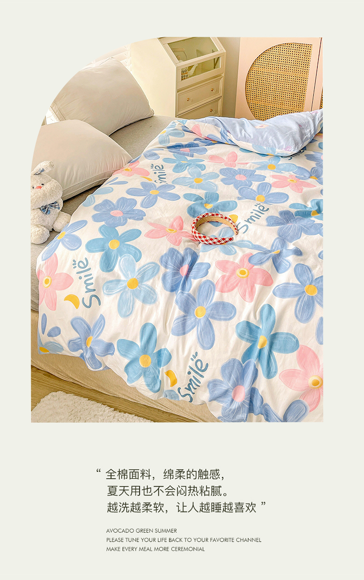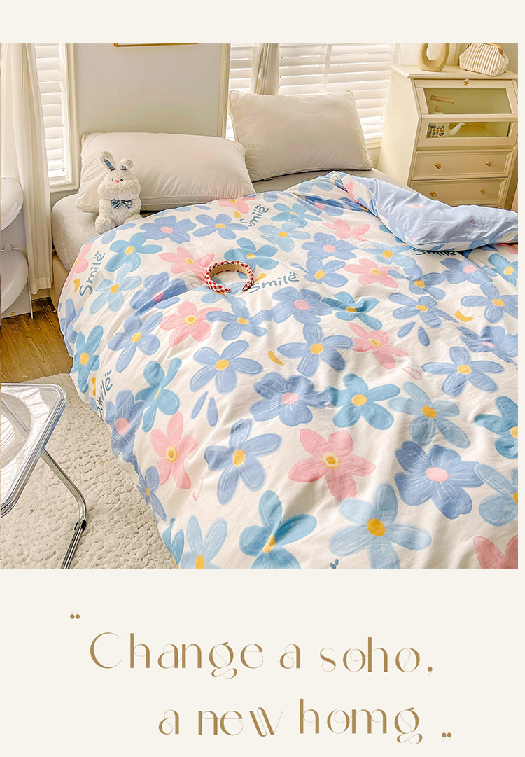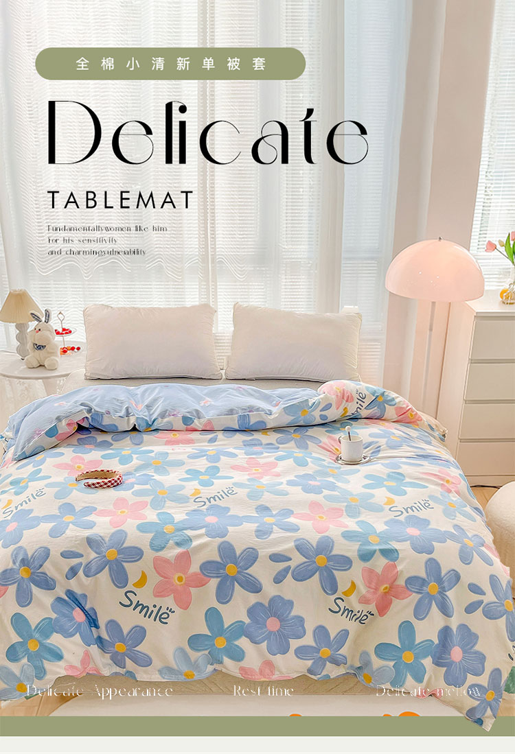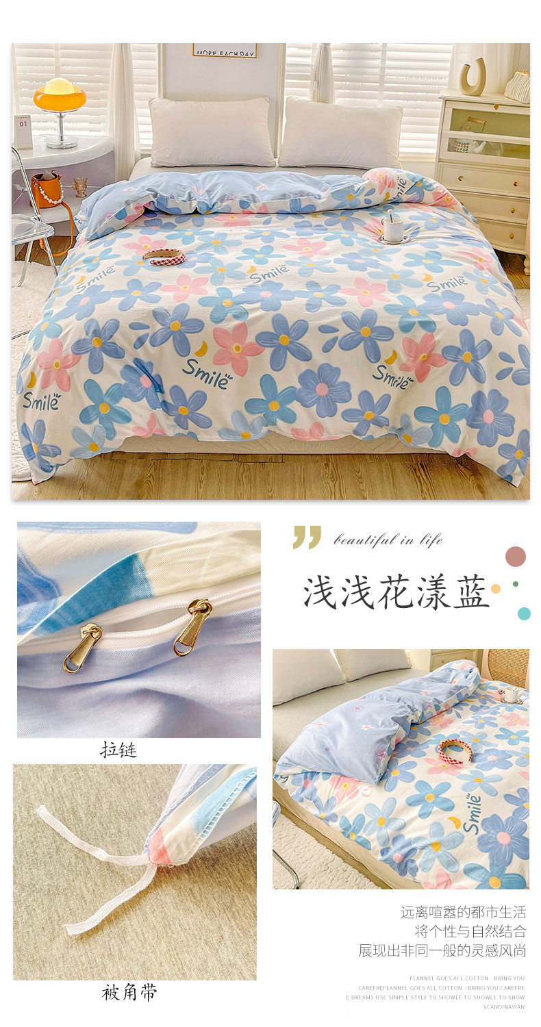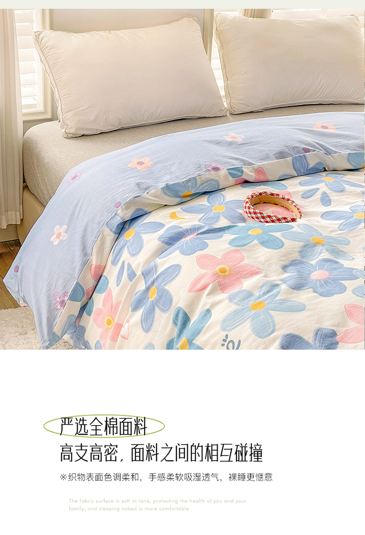 商品名称:2024新款ins风全棉印花单品被套 浅浅花漾蓝
