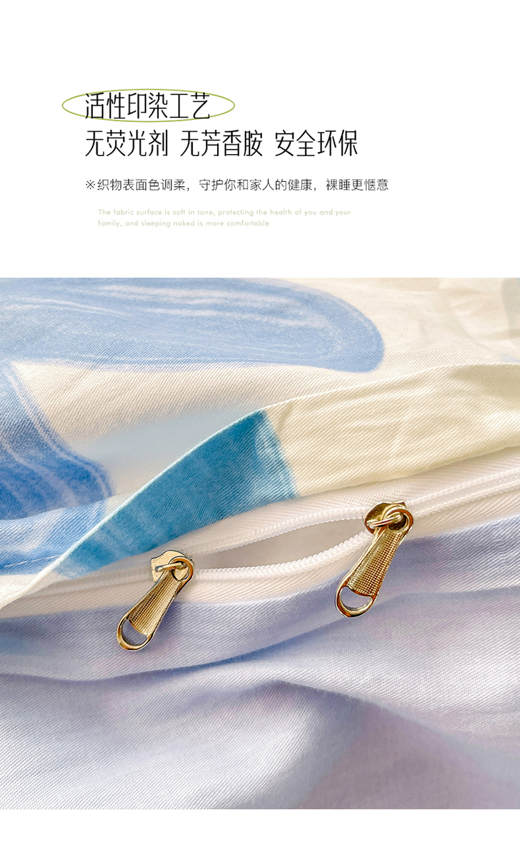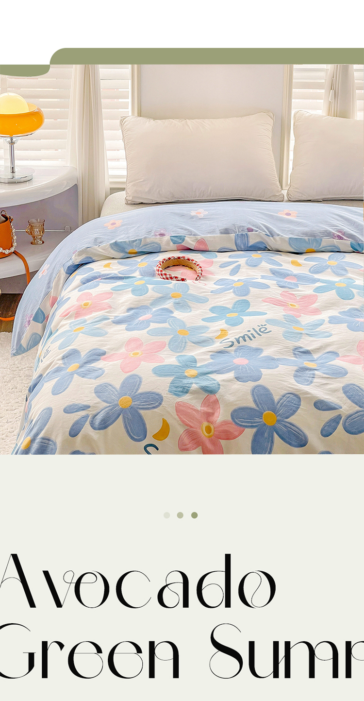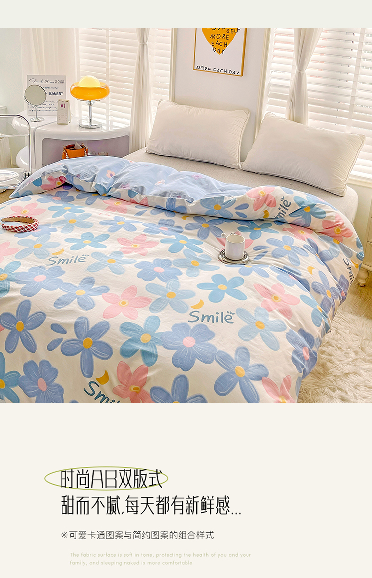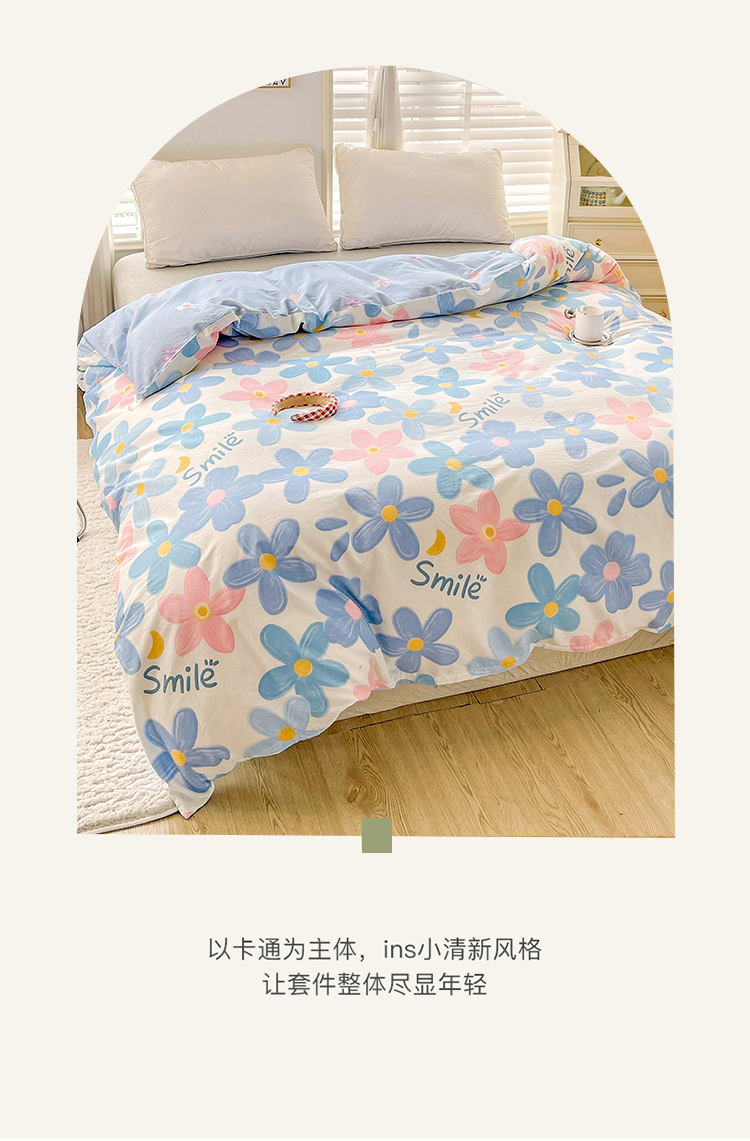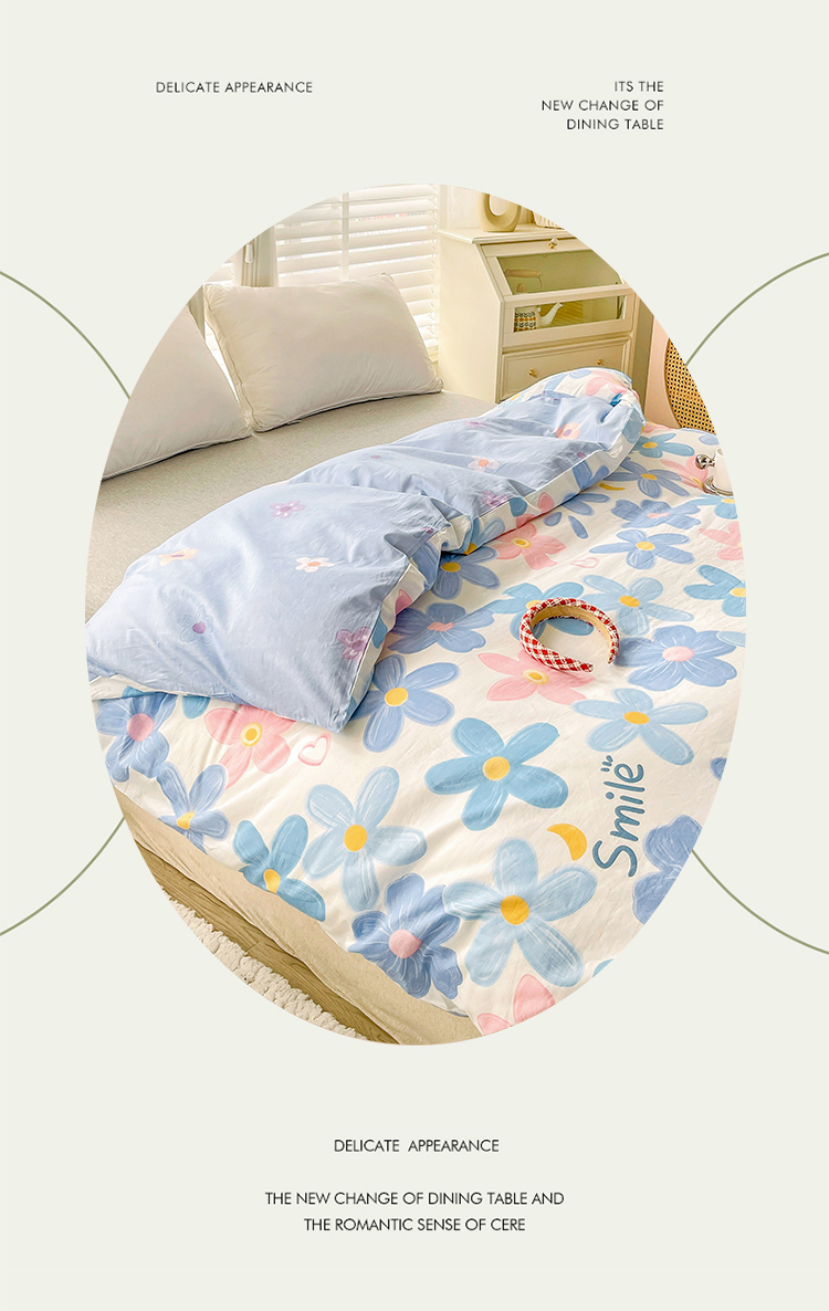 商品名称:2024新款ins风全棉印花单品被套 浅浅花漾蓝