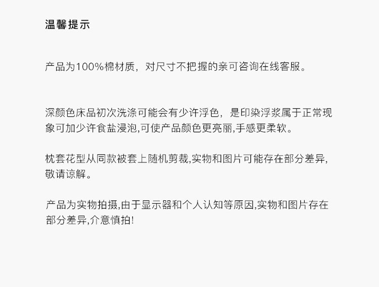 3、通州区市场监督局友情提醒,近期涉及到床上用品不褪色不掉毛不缩水的投诉和以世界知名品牌图案为面料的床品举报较多。请各商家自检自查,对照整改或进行下架处理。