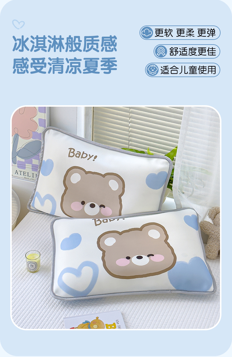 丽美人 2024新款儿童冰丝枕套 可可熊