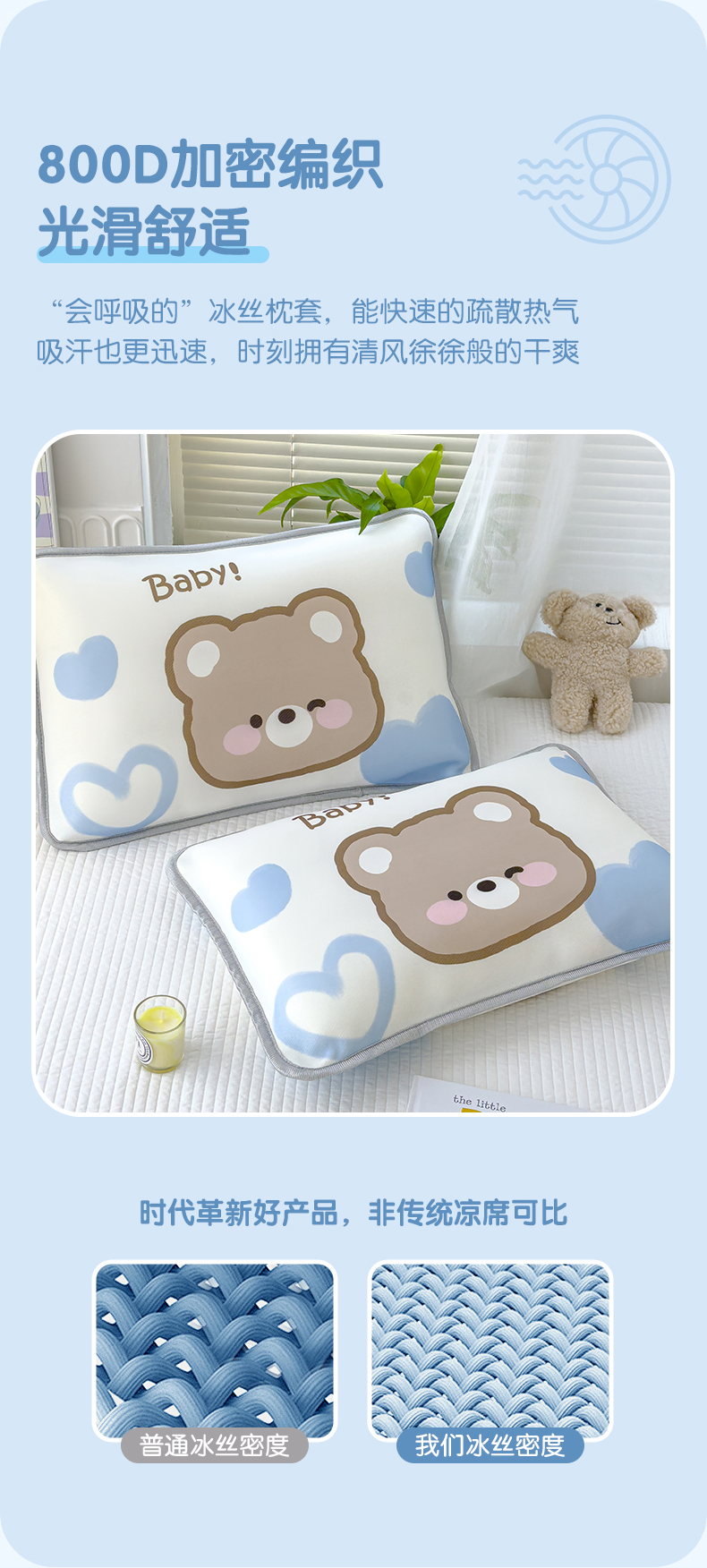 商品名称:丽美人 2024新款儿童冰丝枕套 可可熊