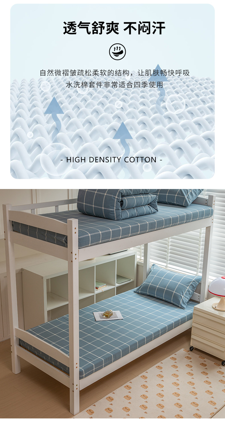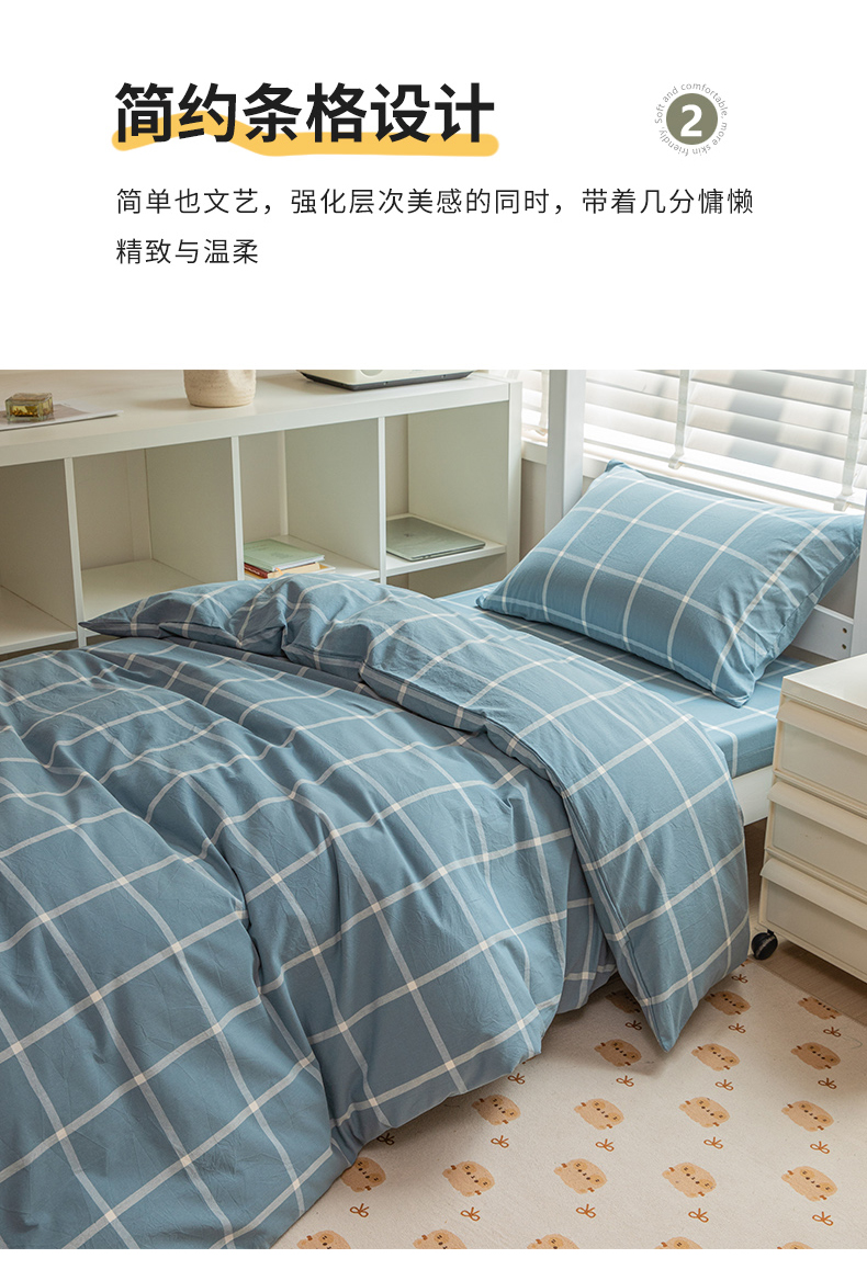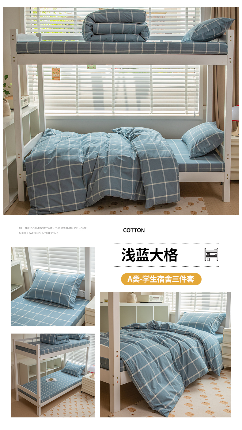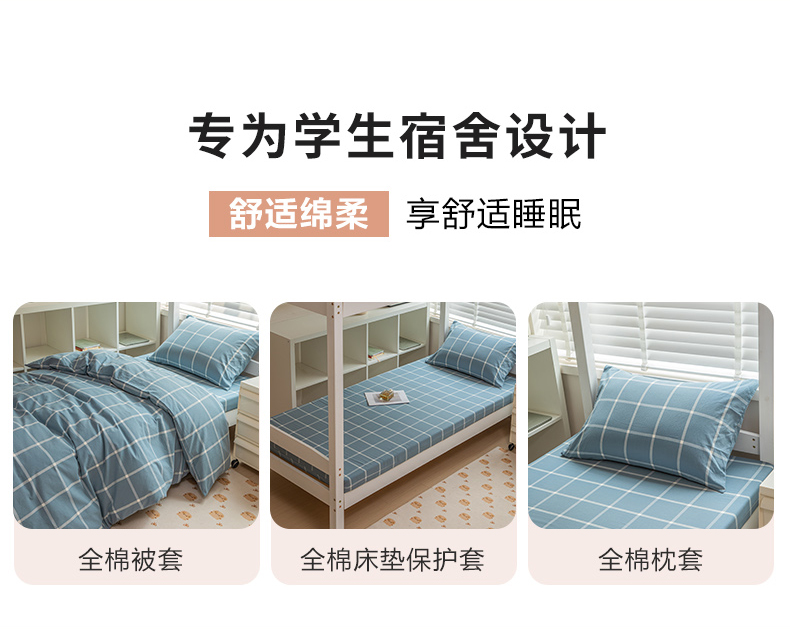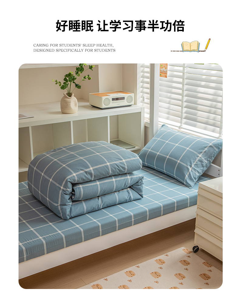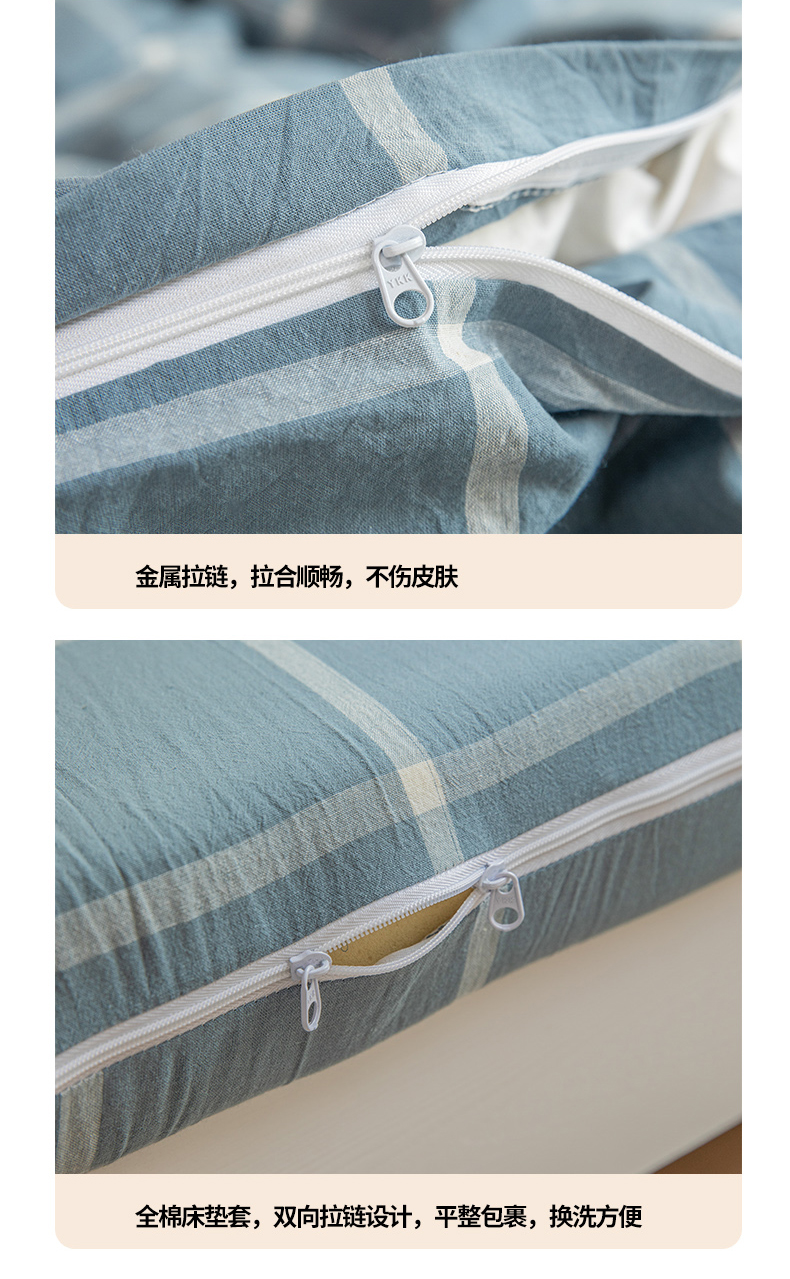 当前位置: 91家纺网 > 商品网购 > 床品套件 > 三件套 > 柠萌家居 2025新款无印良品风A类色织水洗棉全棉学生宿舍三件套床垫套三件套 浅蓝大格