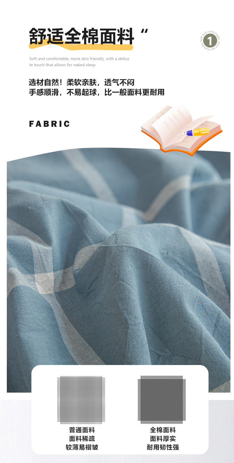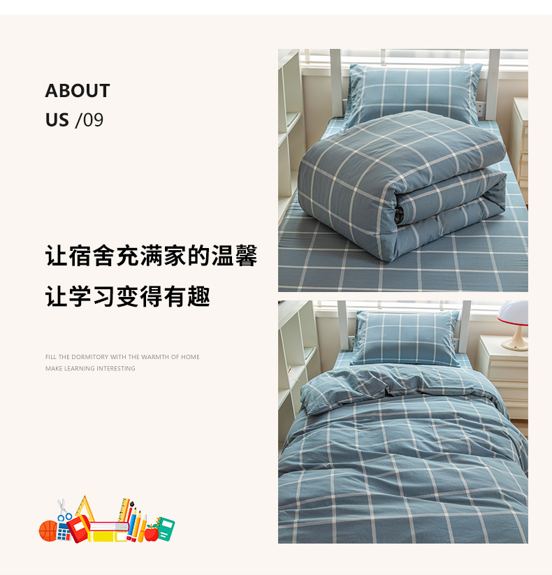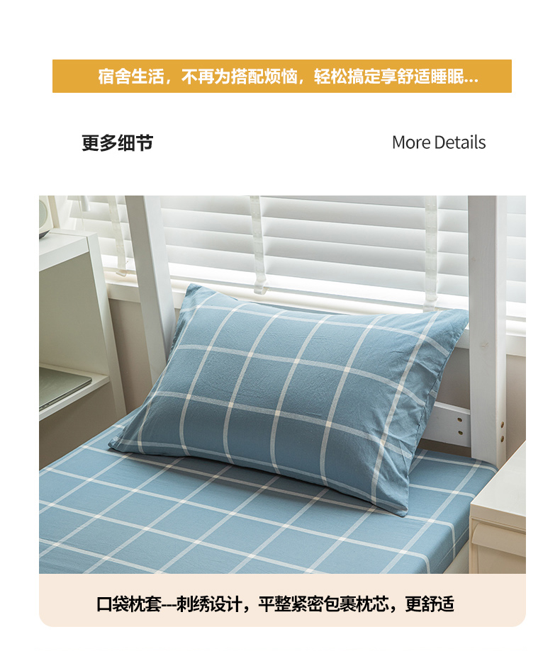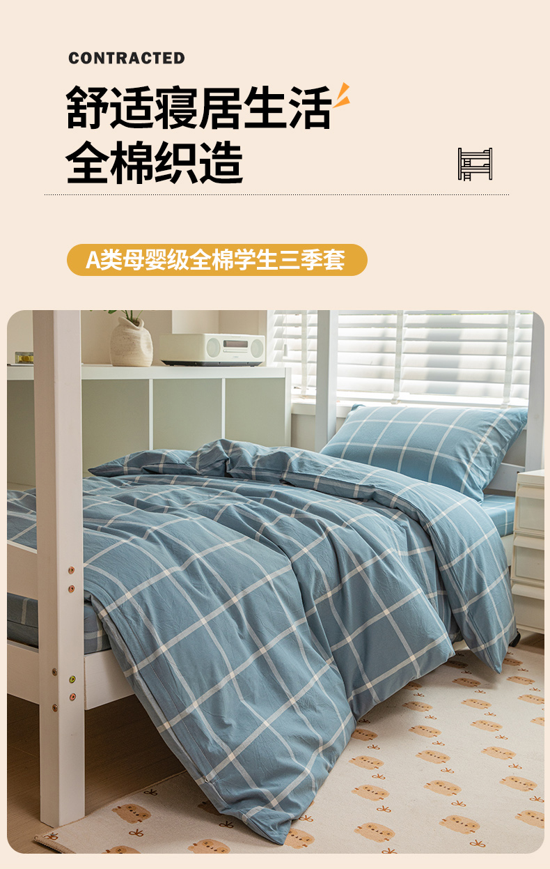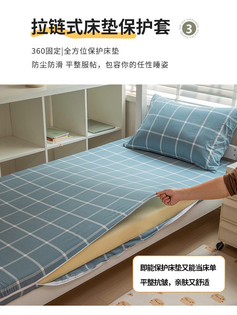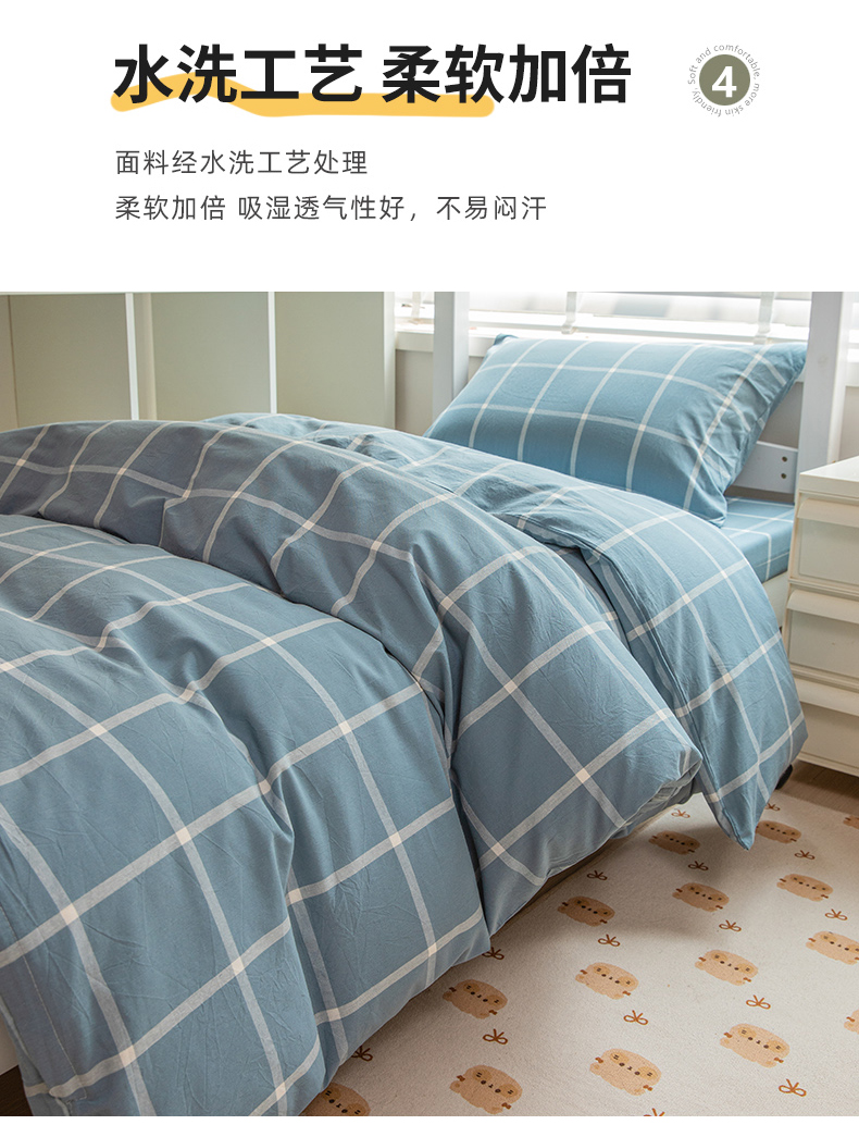 当前位置: 91家纺网 > 商品网购 > 床品套件 > 三件套 > 柠萌家居 2025新款无印良品风A类色织水洗棉全棉学生宿舍三件套床垫套三件套 浅蓝大格
