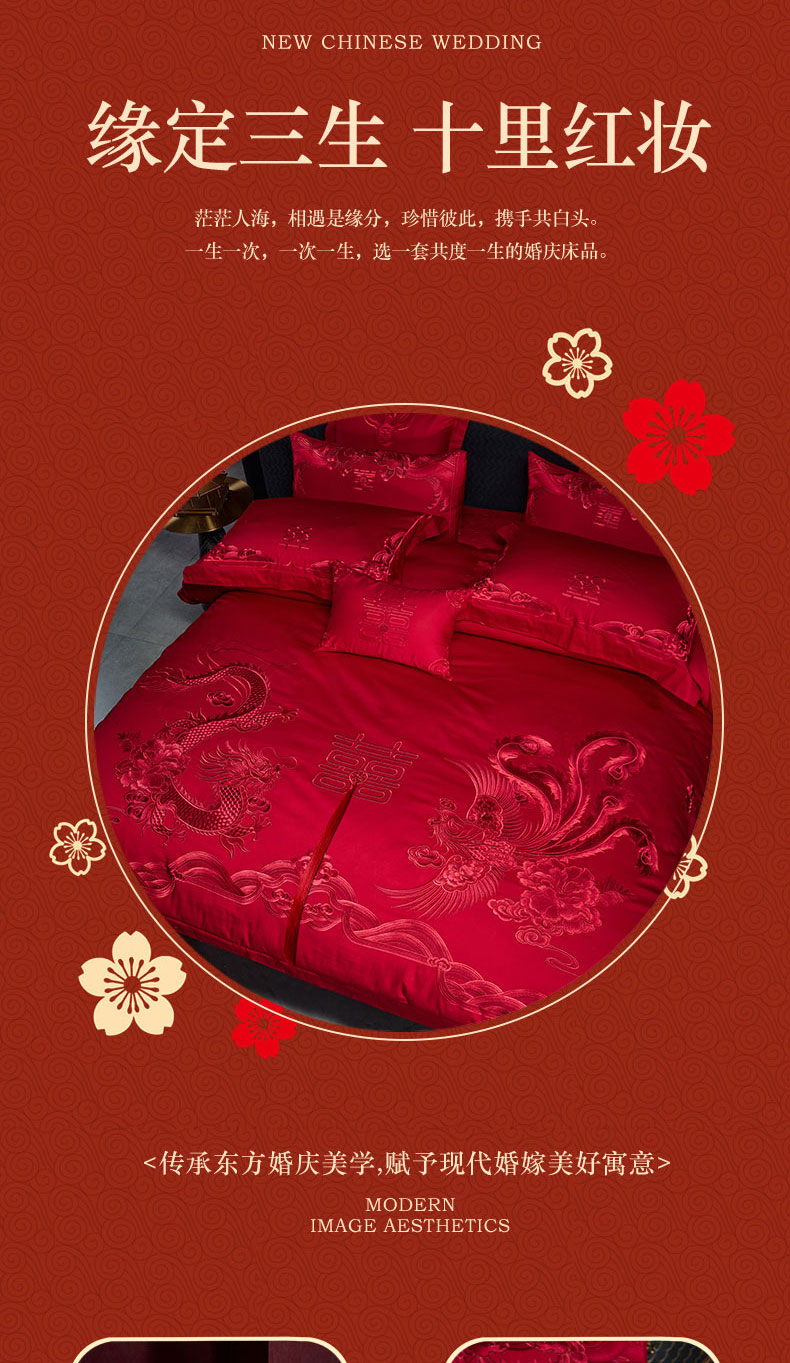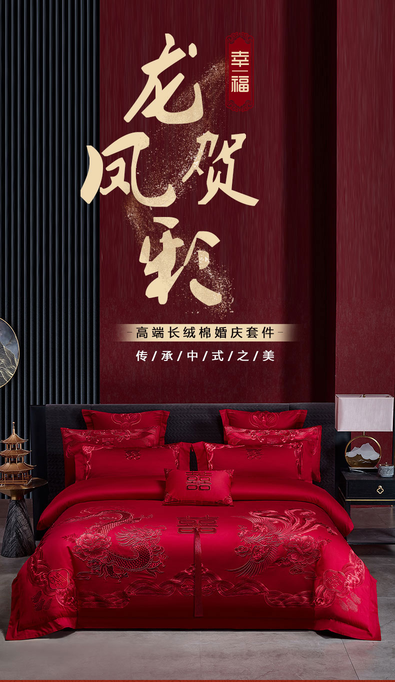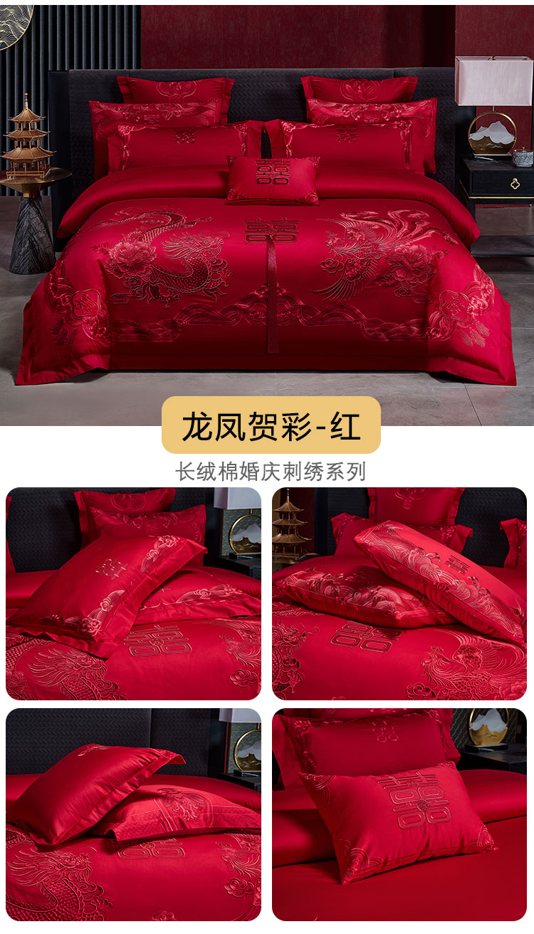 当前位置: 91家纺网 > 商品网购 > 床品套件 > 四件套 > 婚庆四件套 > 芊囍纺 2024新款高端双面长绒棉婚庆套件四件套多件套 龙凤贺彩-红