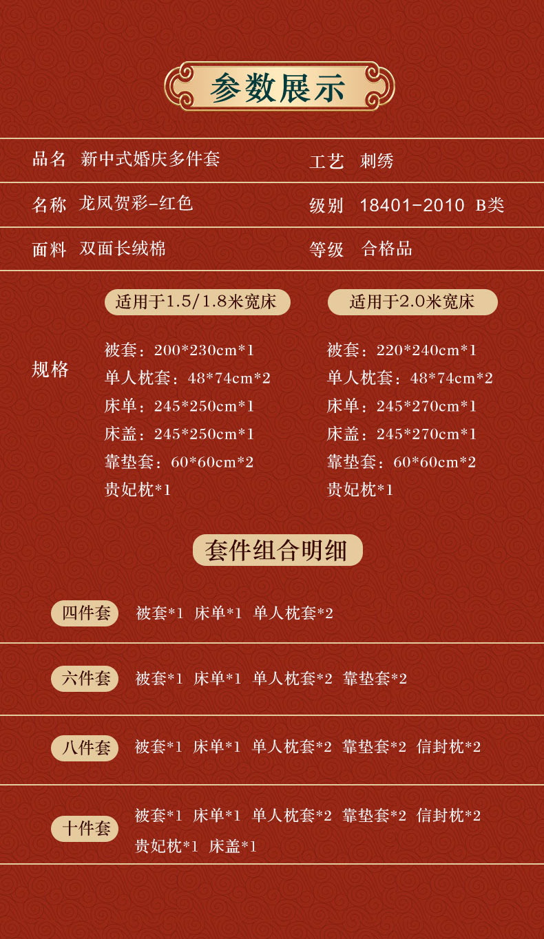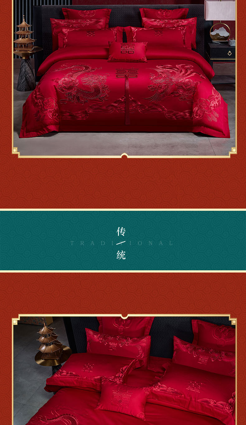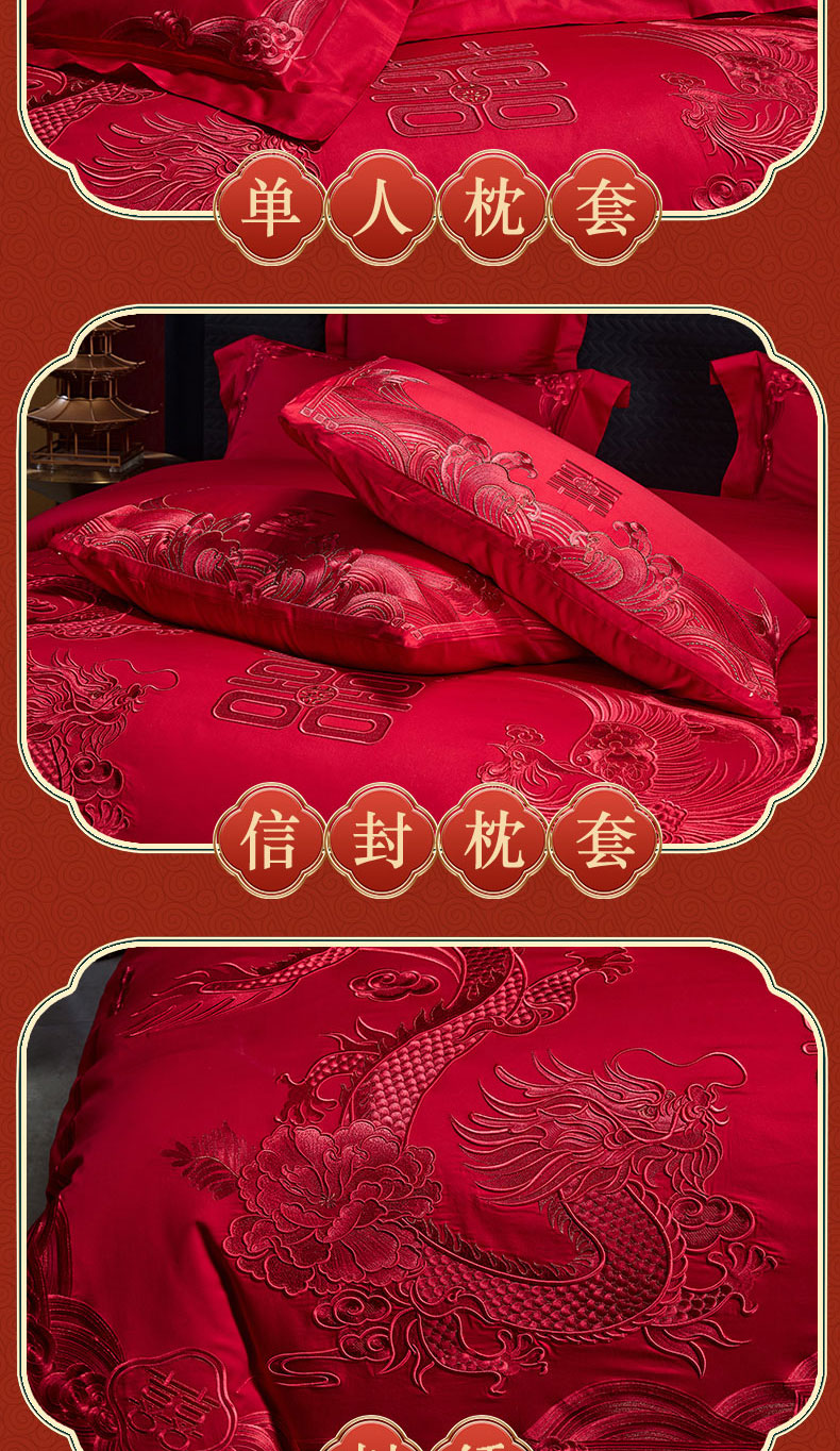 当前位置: 91家纺网 > 商品网购 > 床品套件 > 四件套 > 婚庆四件套 > 芊囍纺 2024新款高端双面长绒棉婚庆套件四件套多件套 龙凤贺彩-红
