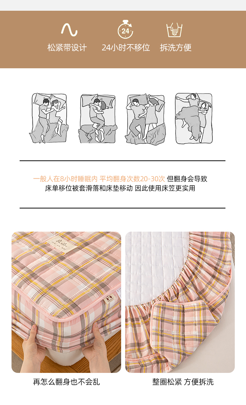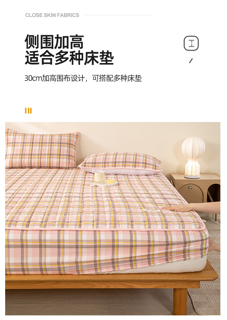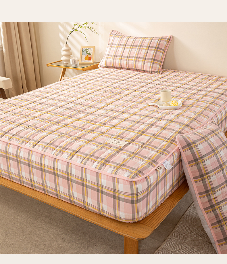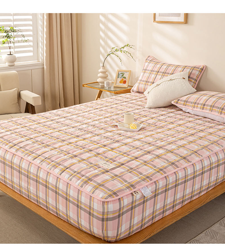 (总)萌飞 2025新款A类全棉纯棉色织抗菌夹棉床笠单床笠单品床笠单件床笠同款枕套一对,高级灰,灰小格,卡其色,蓝小格,莫妮卡-粉,莫妮卡-蓝,奶油白,少女粉