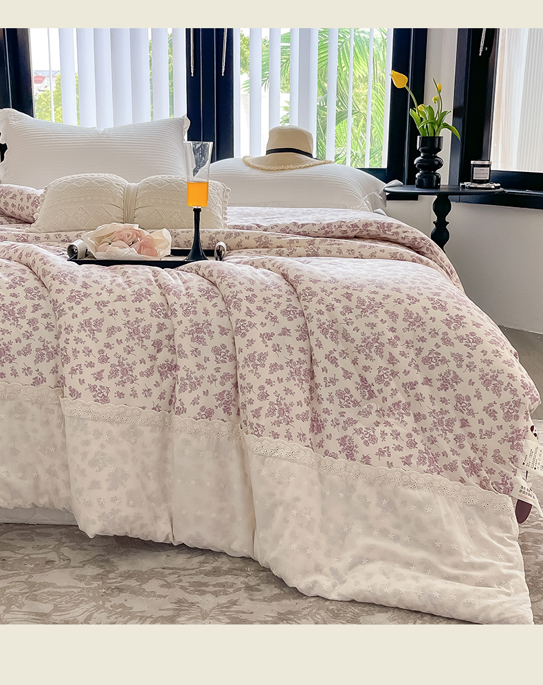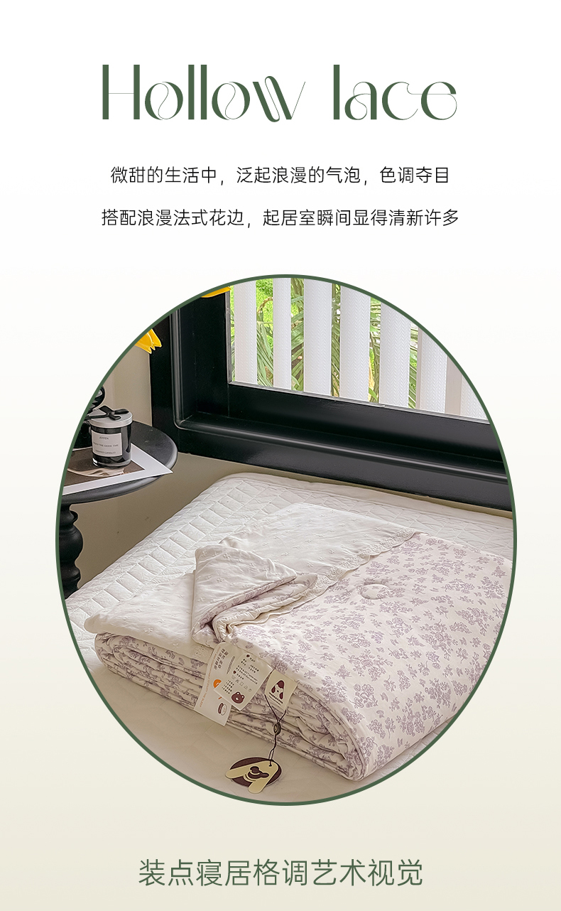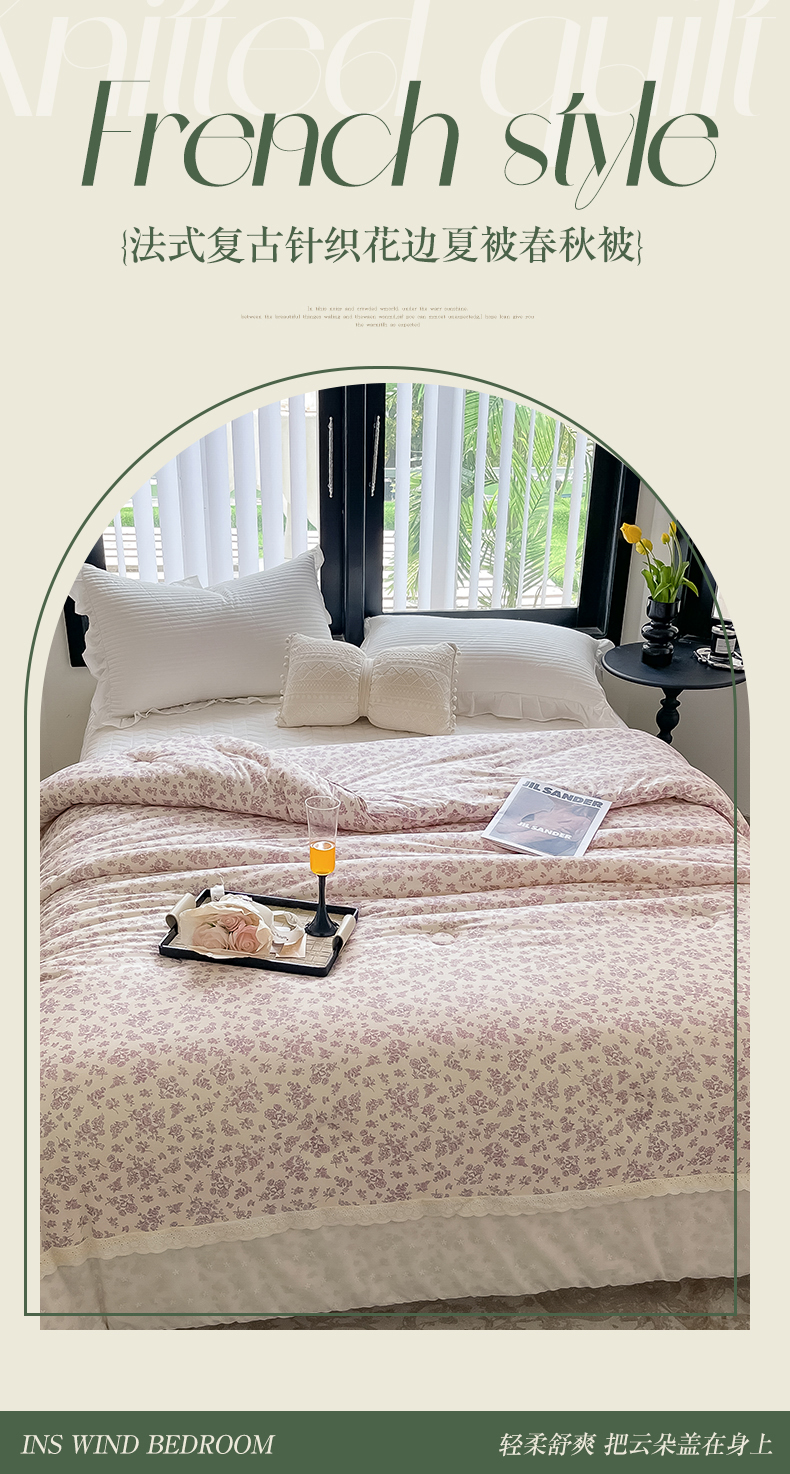 奈萝家纺 2024新款法式花边款针织夏被春秋被可机洗 雅香
