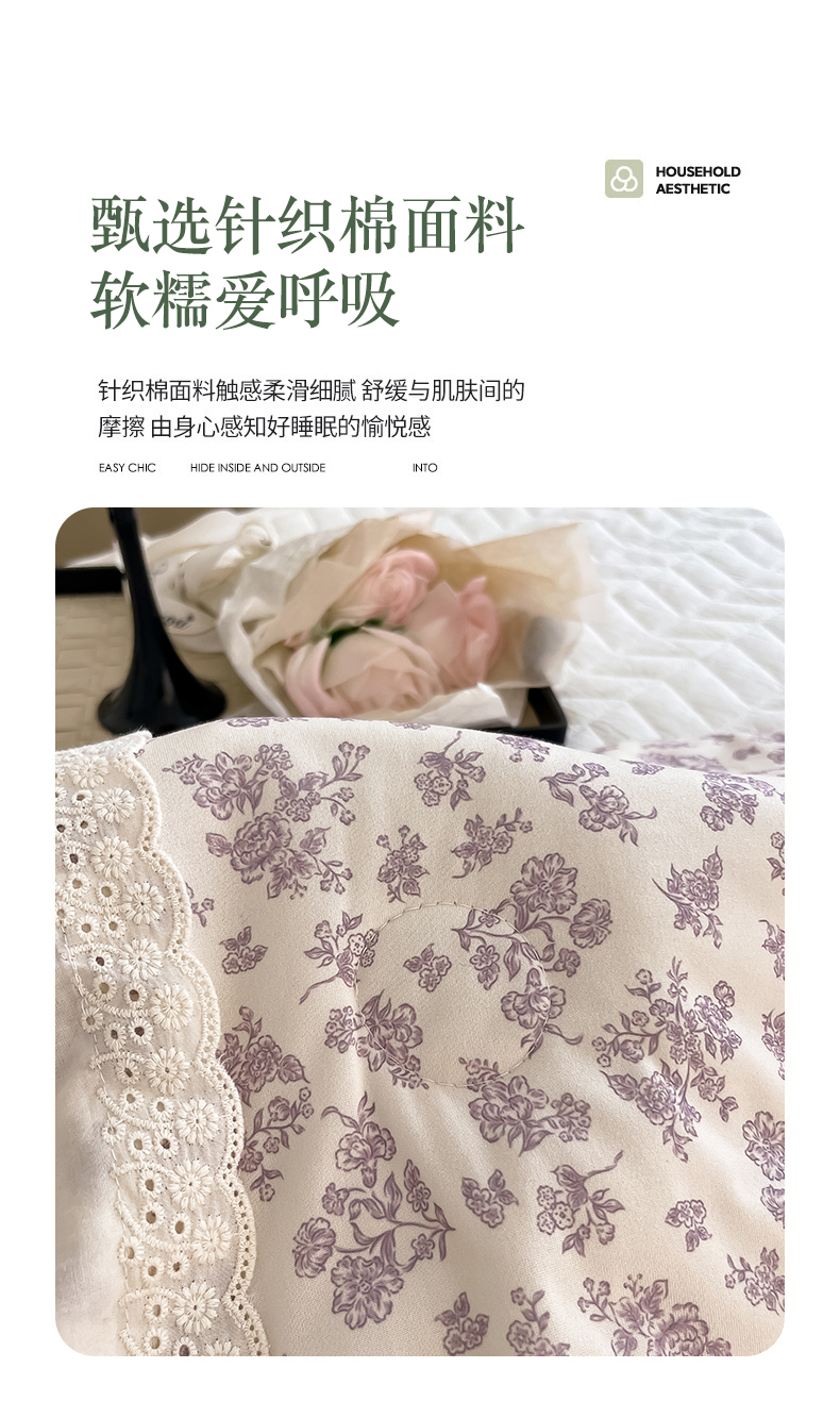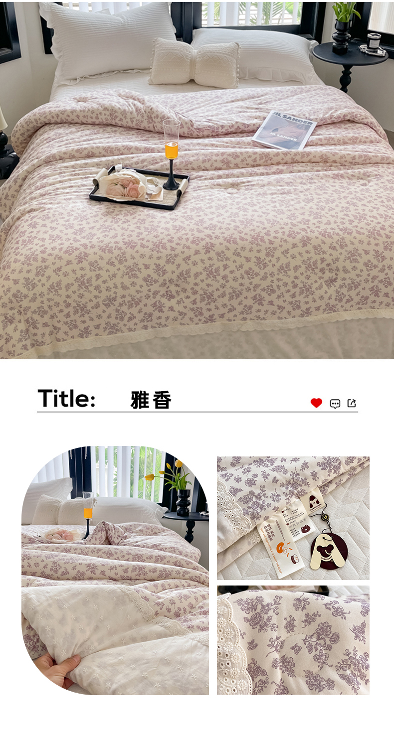 商品名称:奈萝家纺 2024新款法式花边款针织夏被春秋被可机洗 雅香