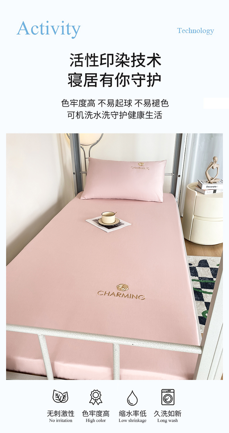 商品名称:(总)暖季家纺 2025新款学生上下铺山茶花绣花床笠支持定制