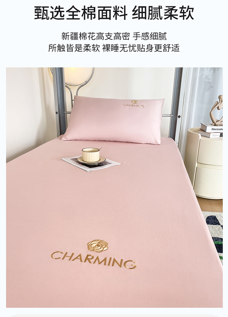 (总)暖季家纺 2025新款学生上下铺山茶花绣花床笠支持定制