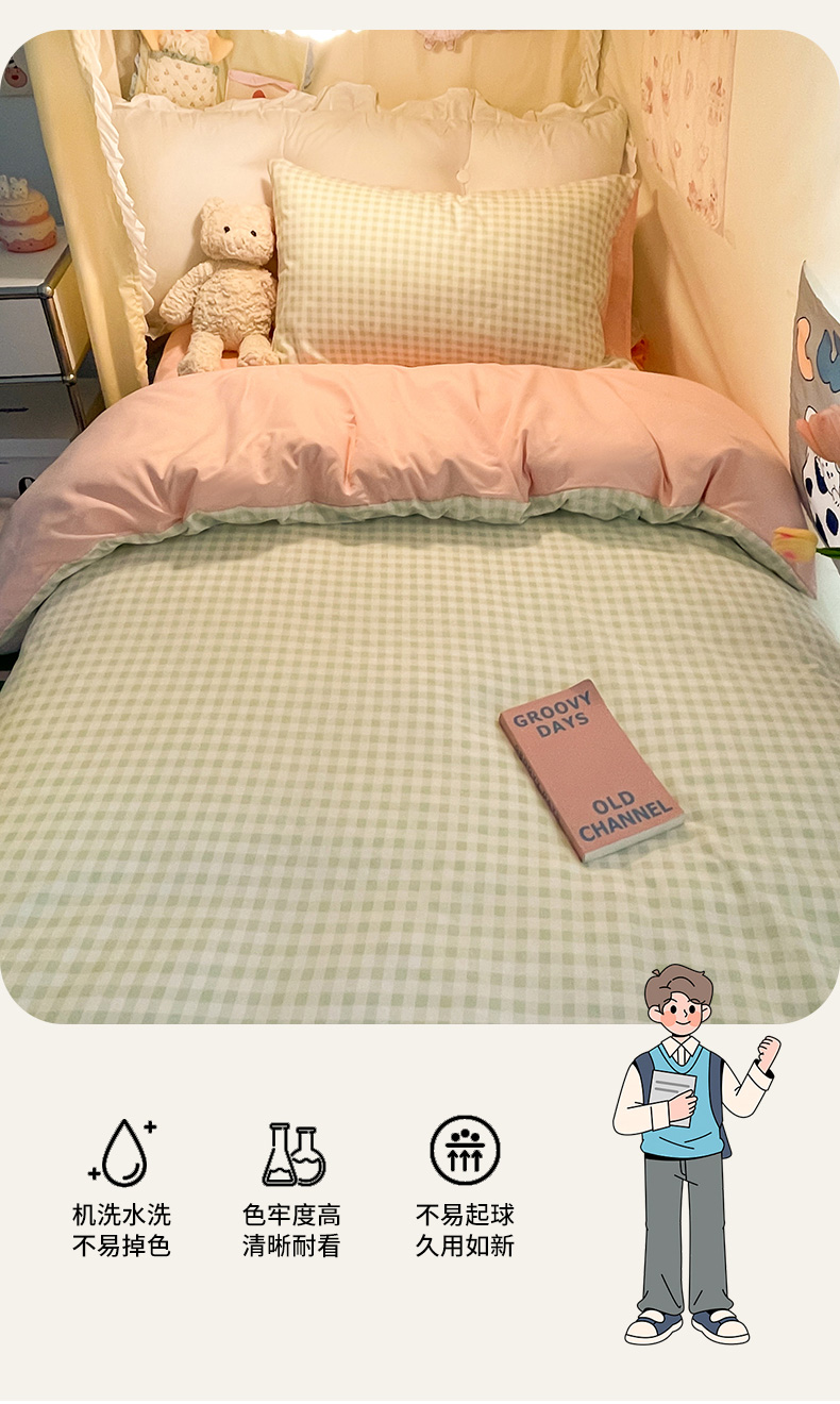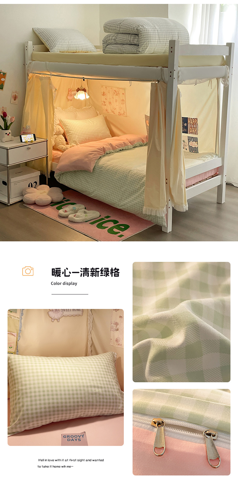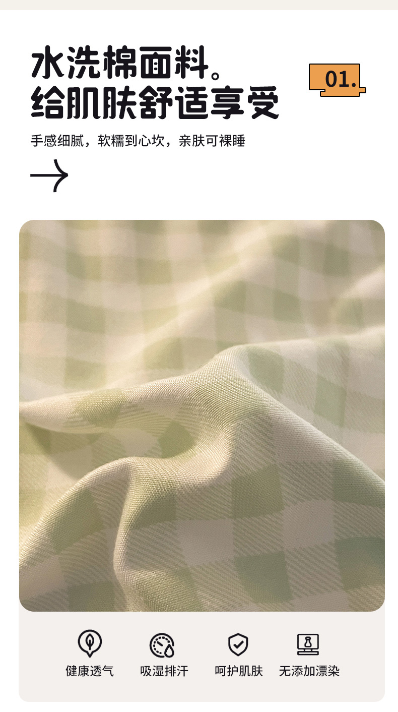 当前位置: 91家纺网 > 商品网购 > 床品套件 > 三件套 > 眠帛家居 2024新款A类学生三件套奶油风小清新毛巾绣暖心系列水洗棉床上用品四件套图2 暖心-清新绿格