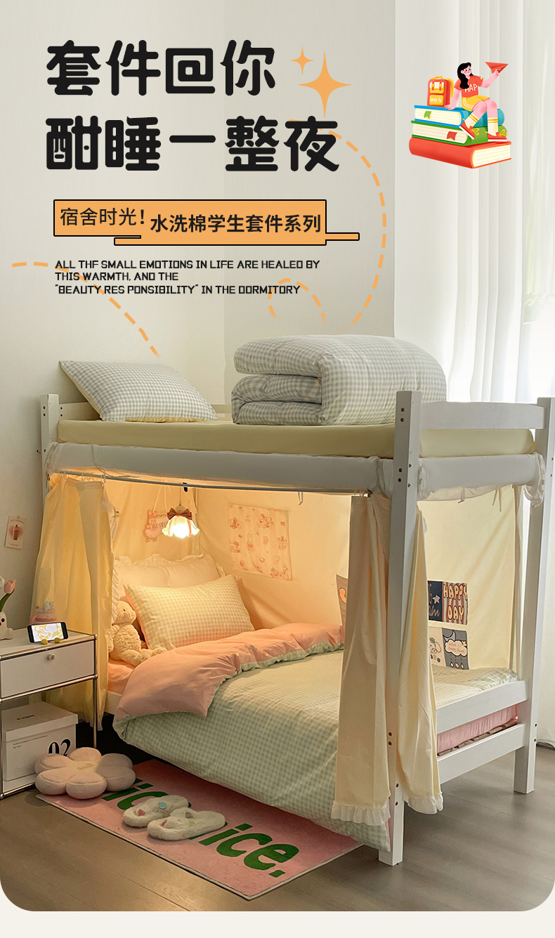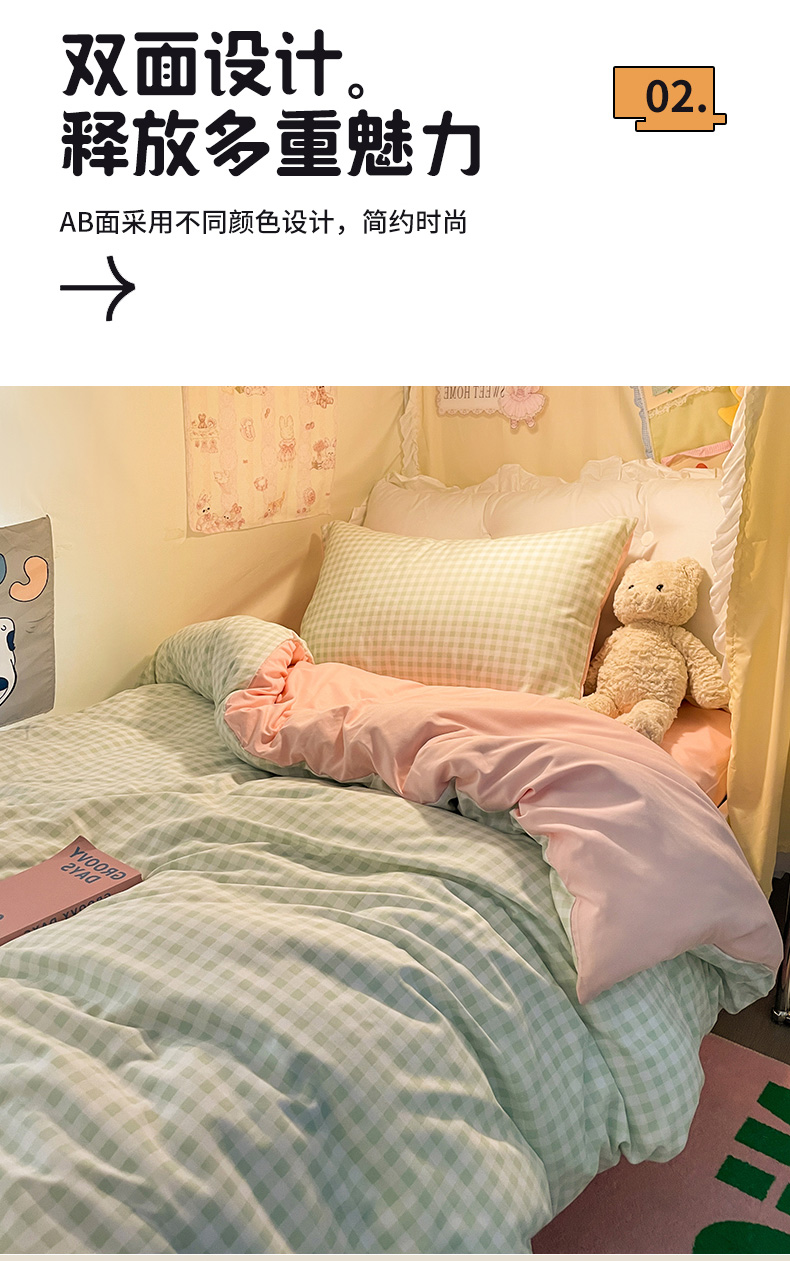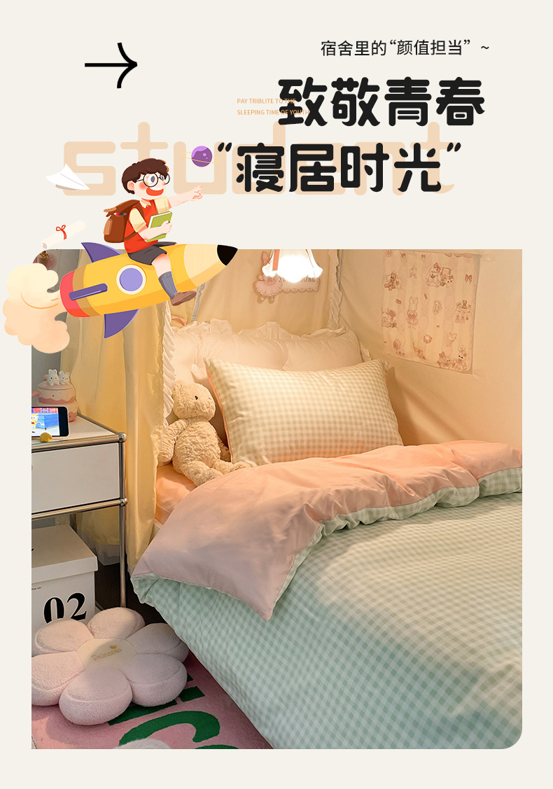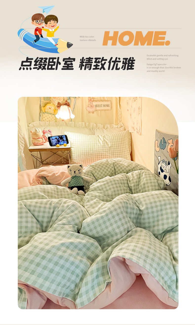 当前位置: 91家纺网 > 商品网购 > 床品套件 > 三件套 > 眠帛家居 2024新款A类学生三件套奶油风小清新毛巾绣暖心系列水洗棉床上用品四件套图2 暖心-清新绿格
