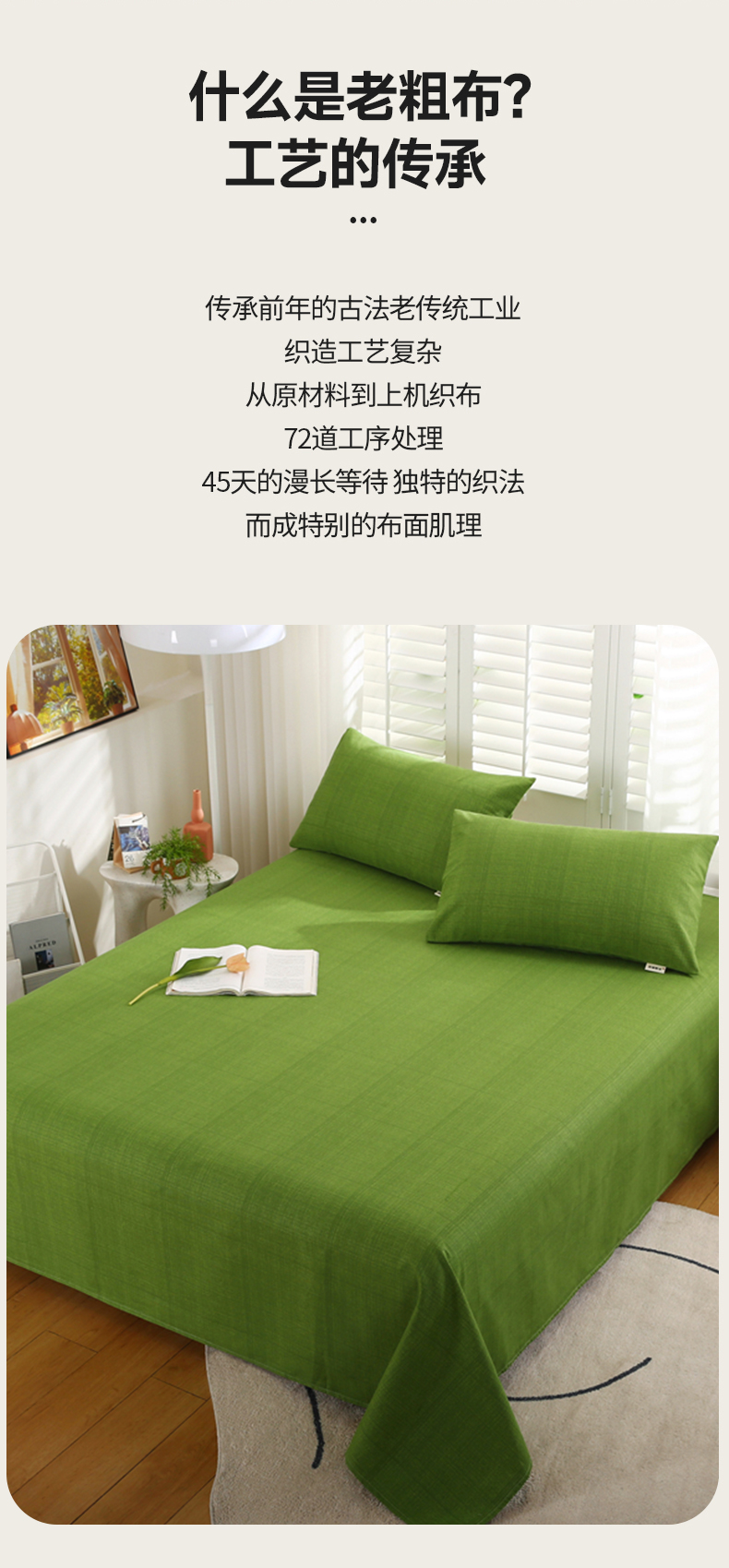• 91家纺网 家纺一手货源 找家纺 伊而梦蚊帐 2025新款原棉老粗布床单系列 青绿
