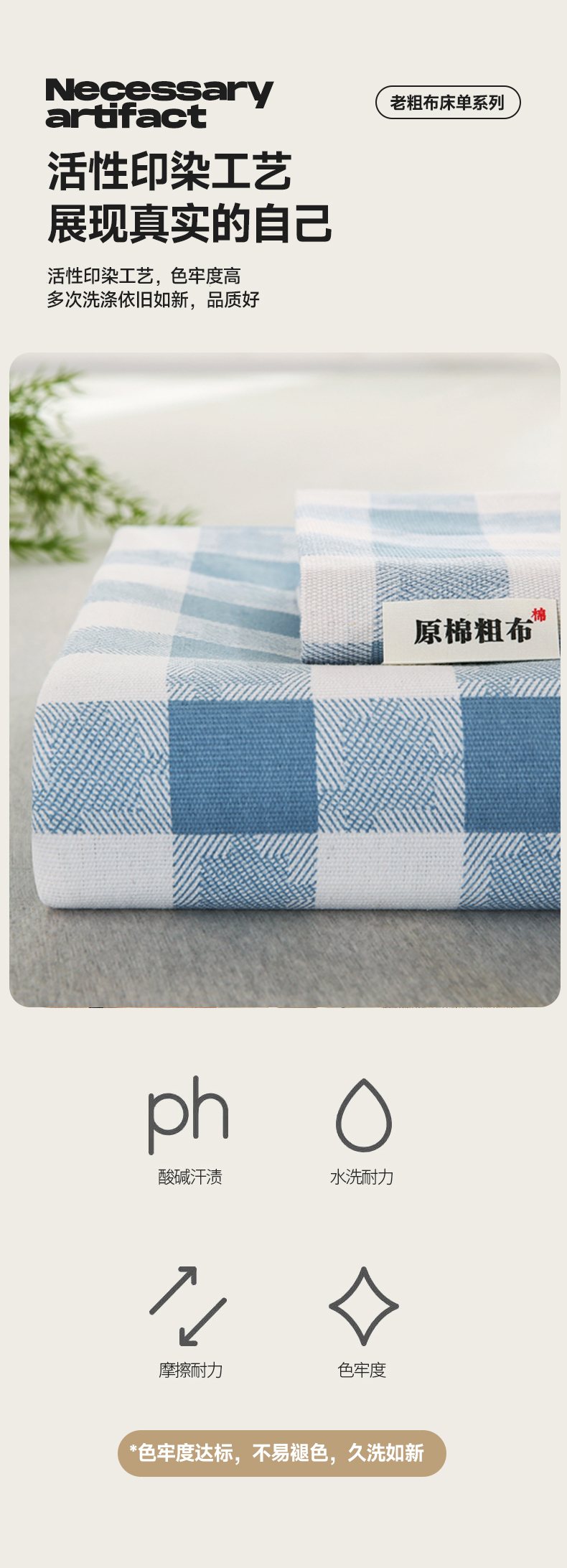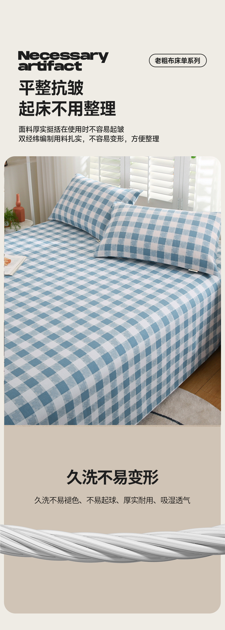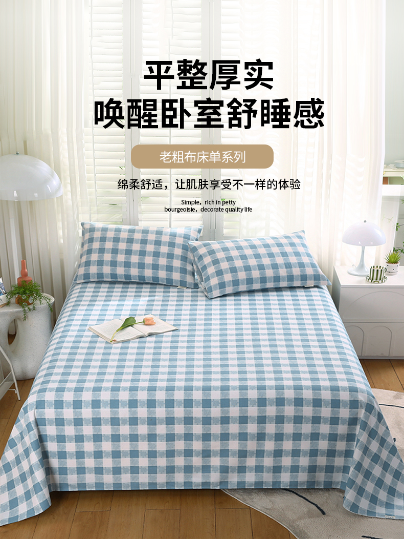 伊而梦蚊帐 2025新款原棉老粗布床单系列 雅致-蓝