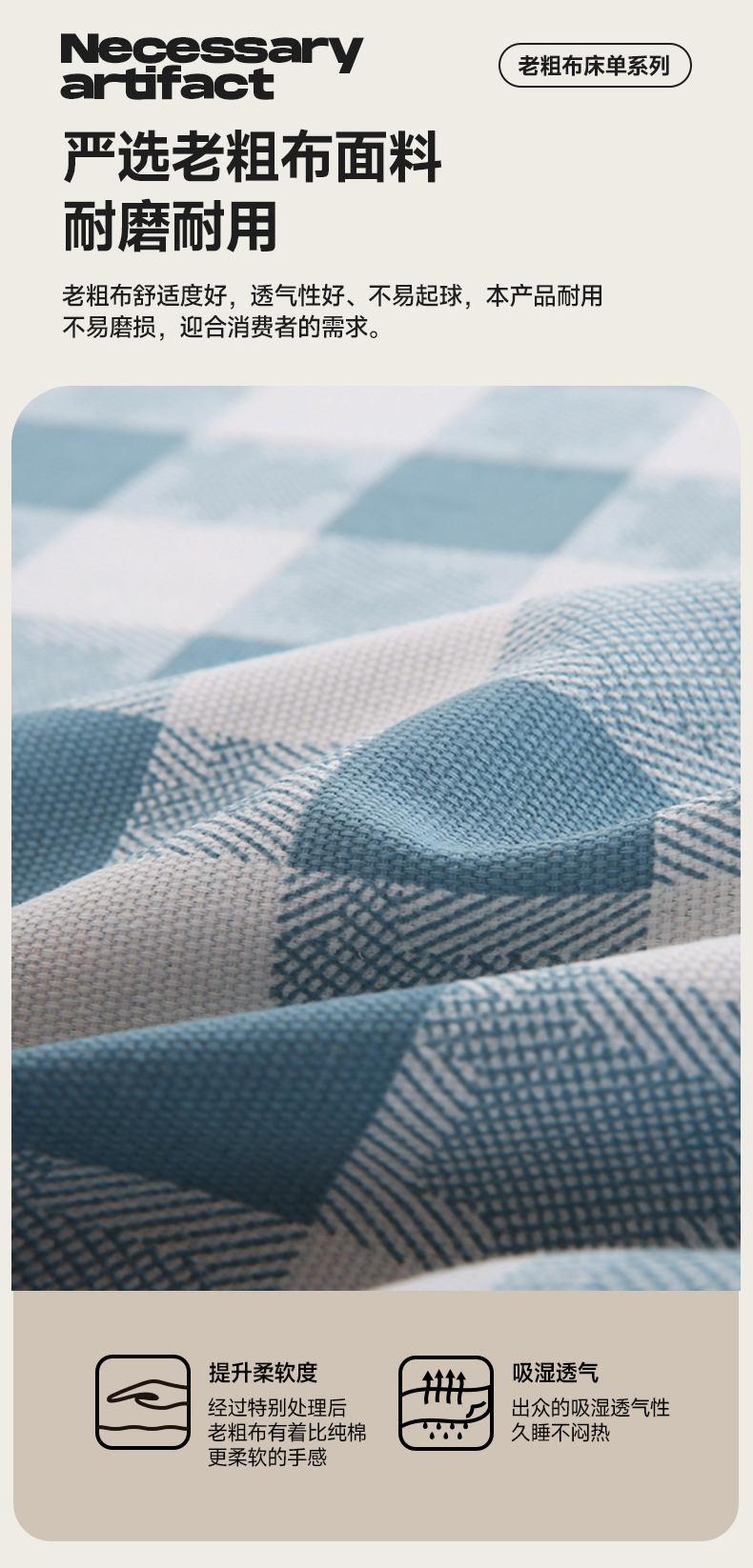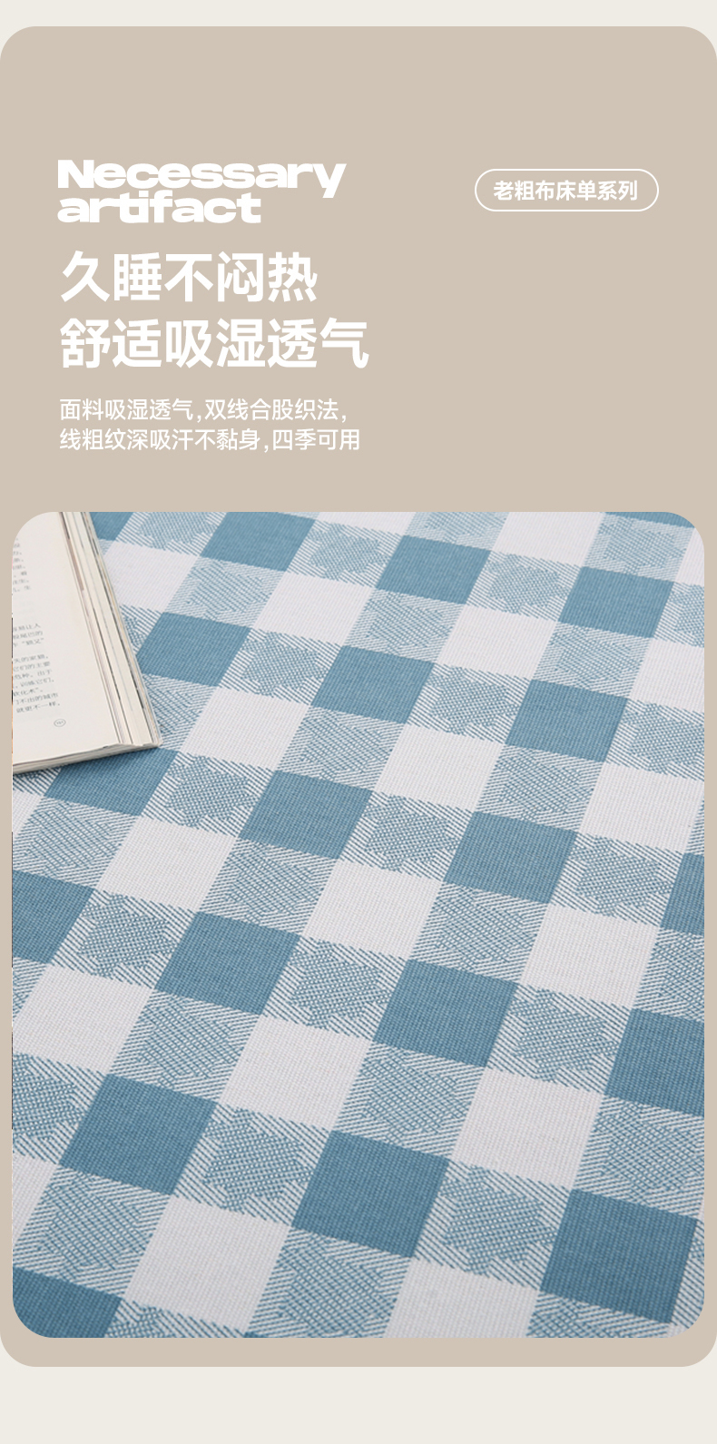 • 91家纺网 家纺一手货源 找家纺 伊而梦蚊帐 2025新款原棉老粗布床单系列 雅致-蓝