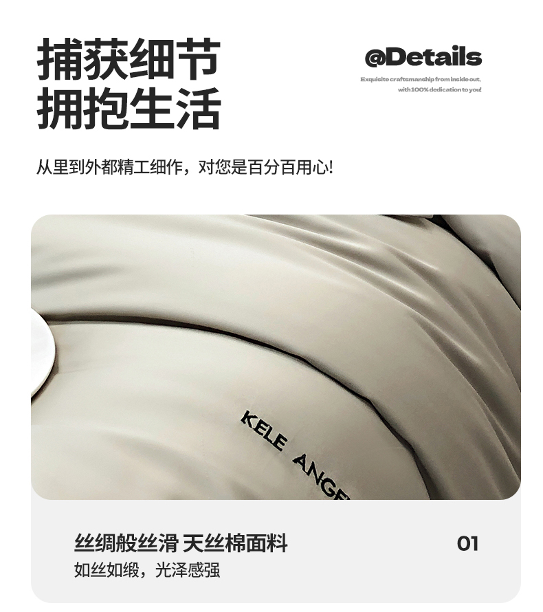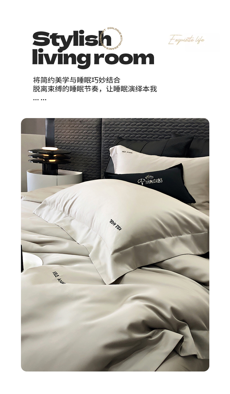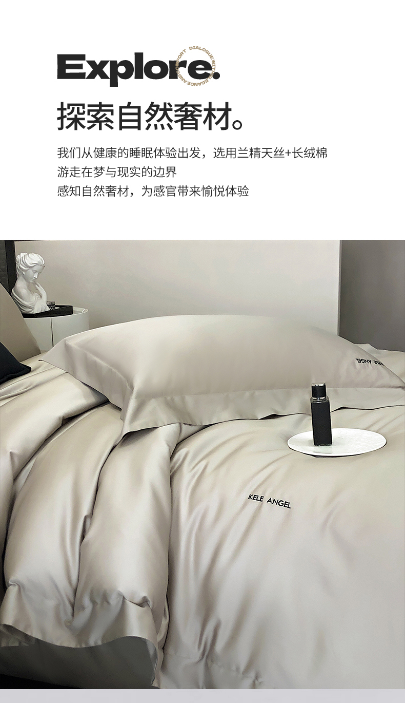 商品名称:罗优家纺 2025新款超细旦天丝+棉四件套(高档礼盒包装) 杏子灰