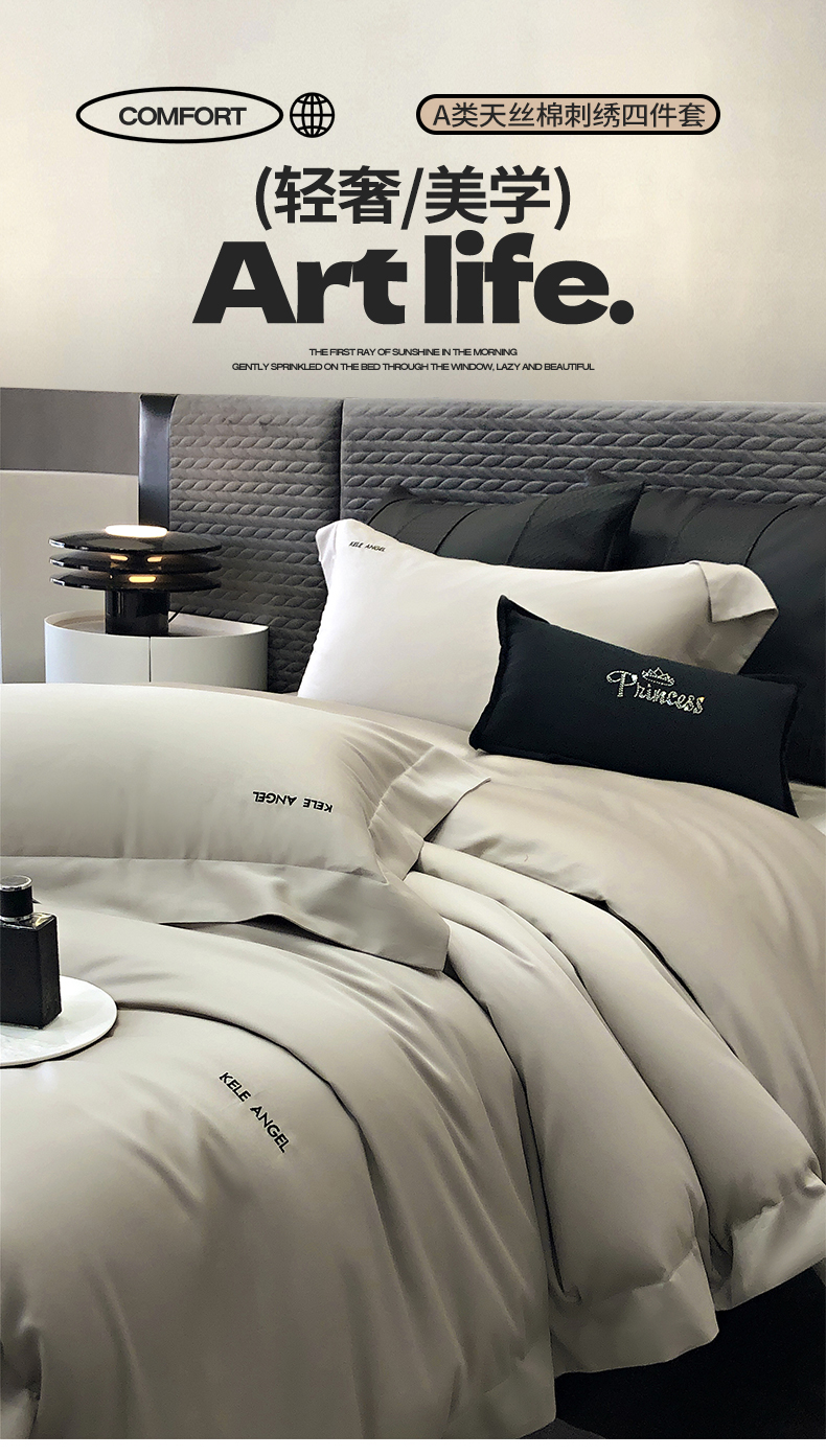 罗优家纺 2025新款超细旦天丝+棉四件套(高档礼盒包装) 杏子灰