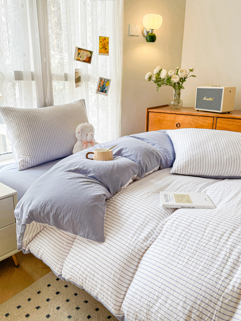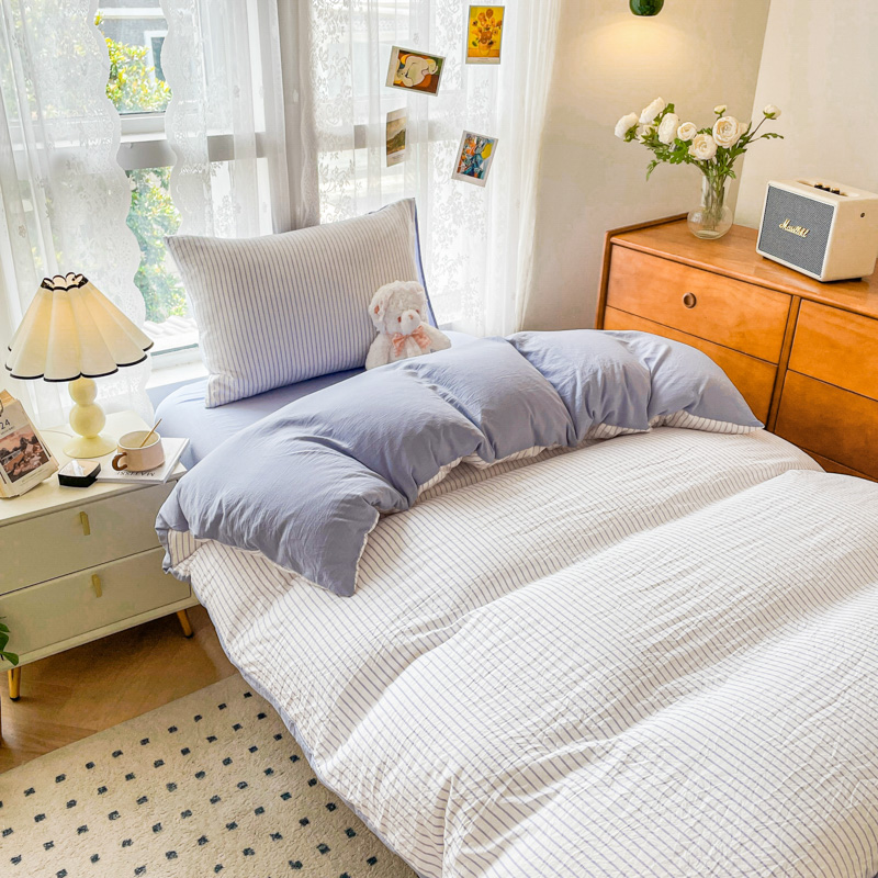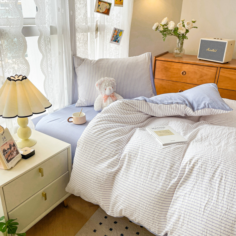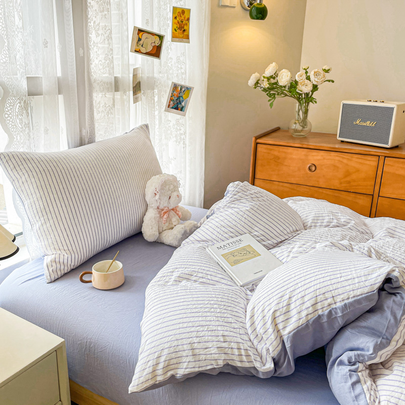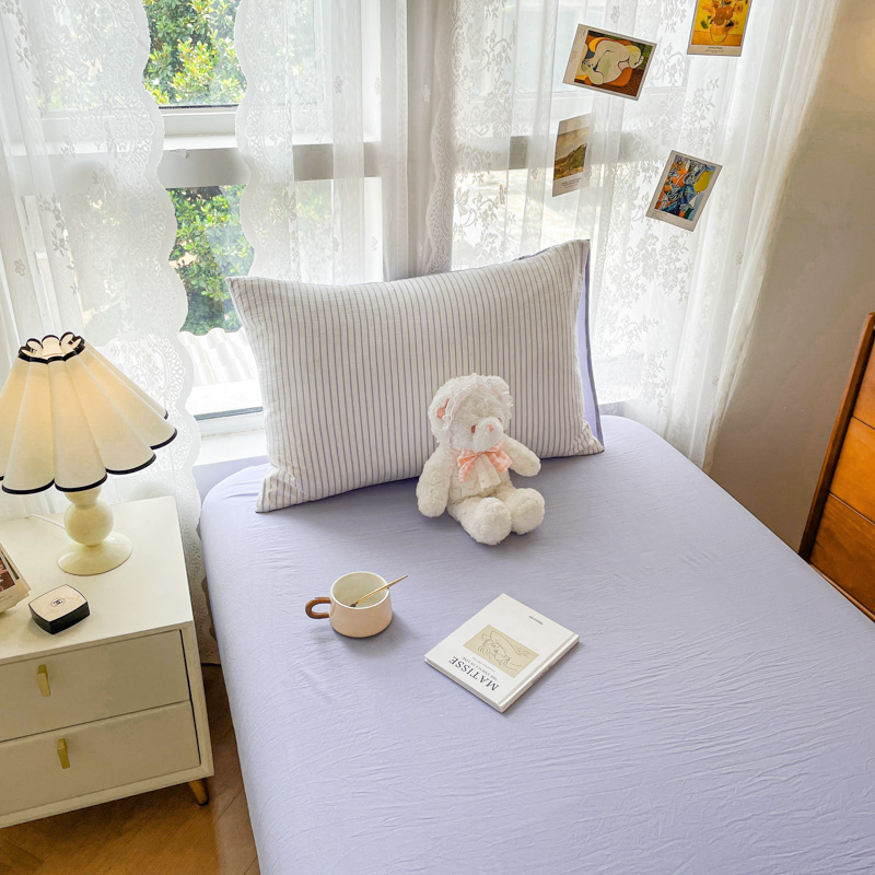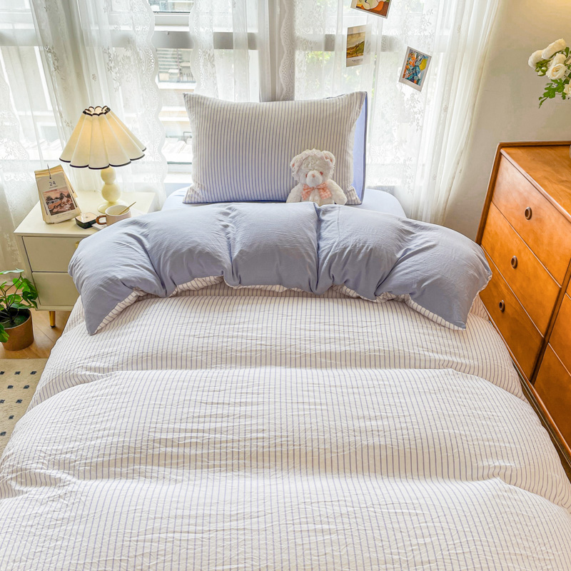 悦织湾家纺 2025新款水洗棉纯色条纹小眼睛学生宿舍三件套 良品条纹紫