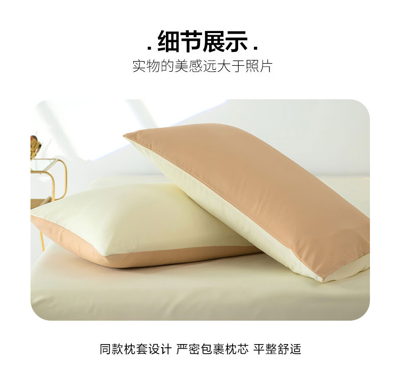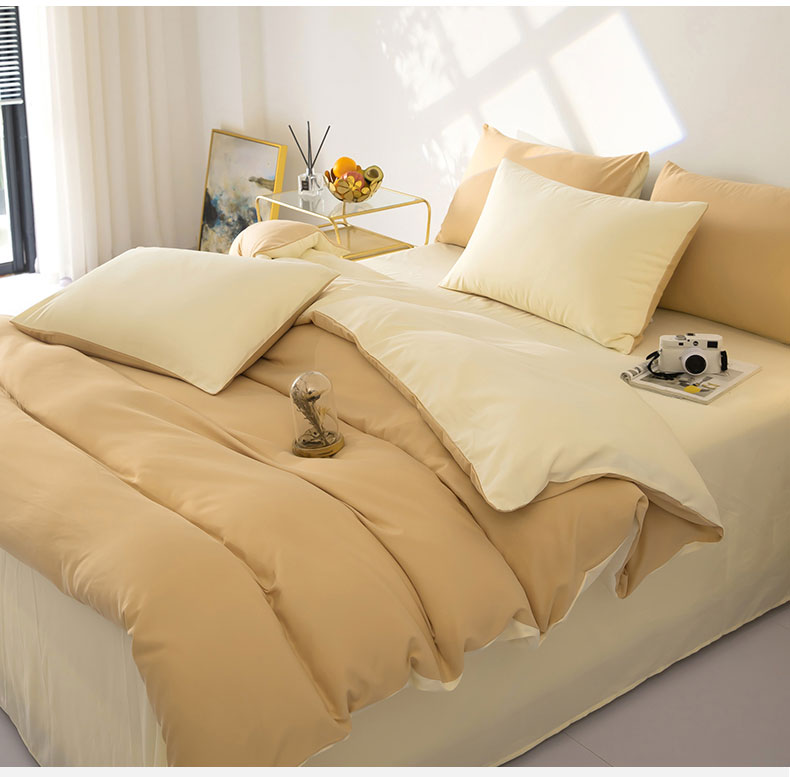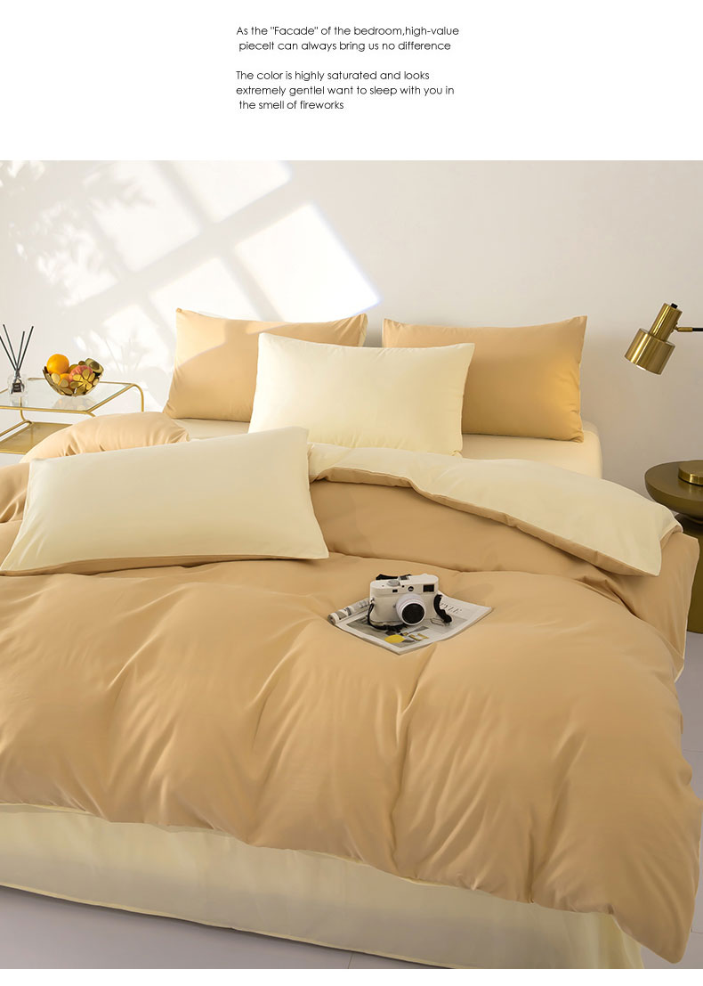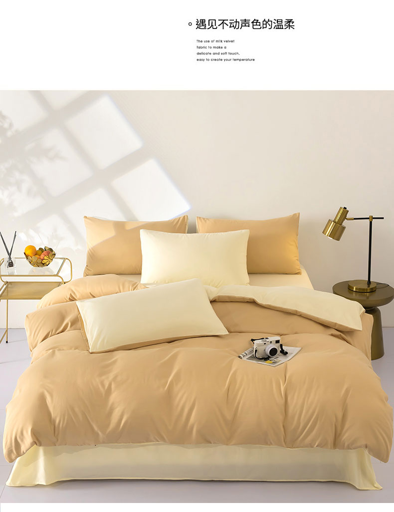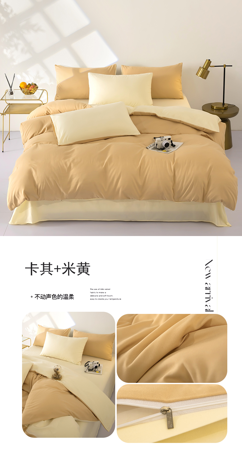 商品名称:梦莱家纺 2024新款亲肤磨毛纯色拼色轻奢系列四件套 卡其+米黄