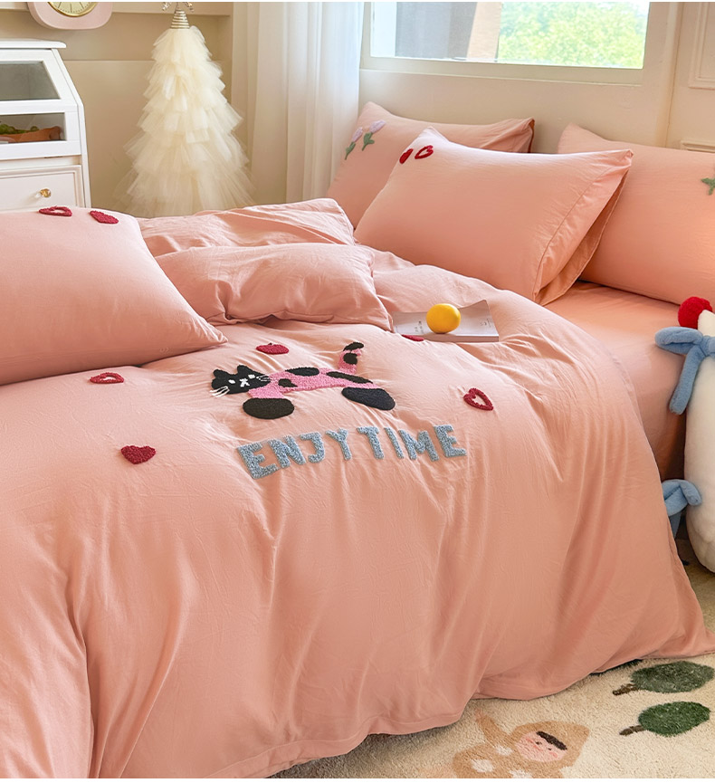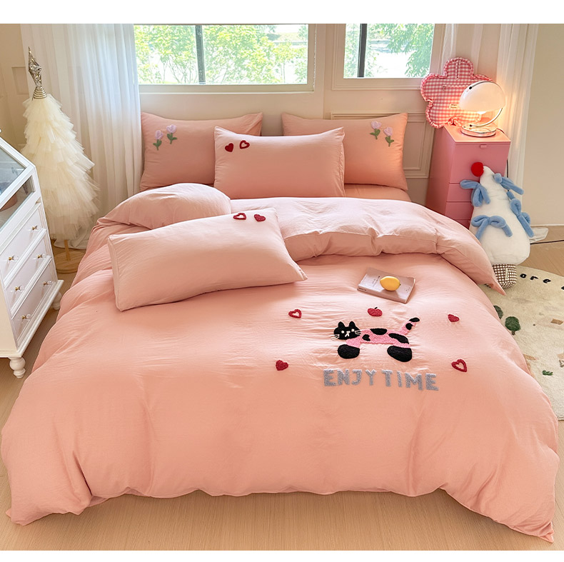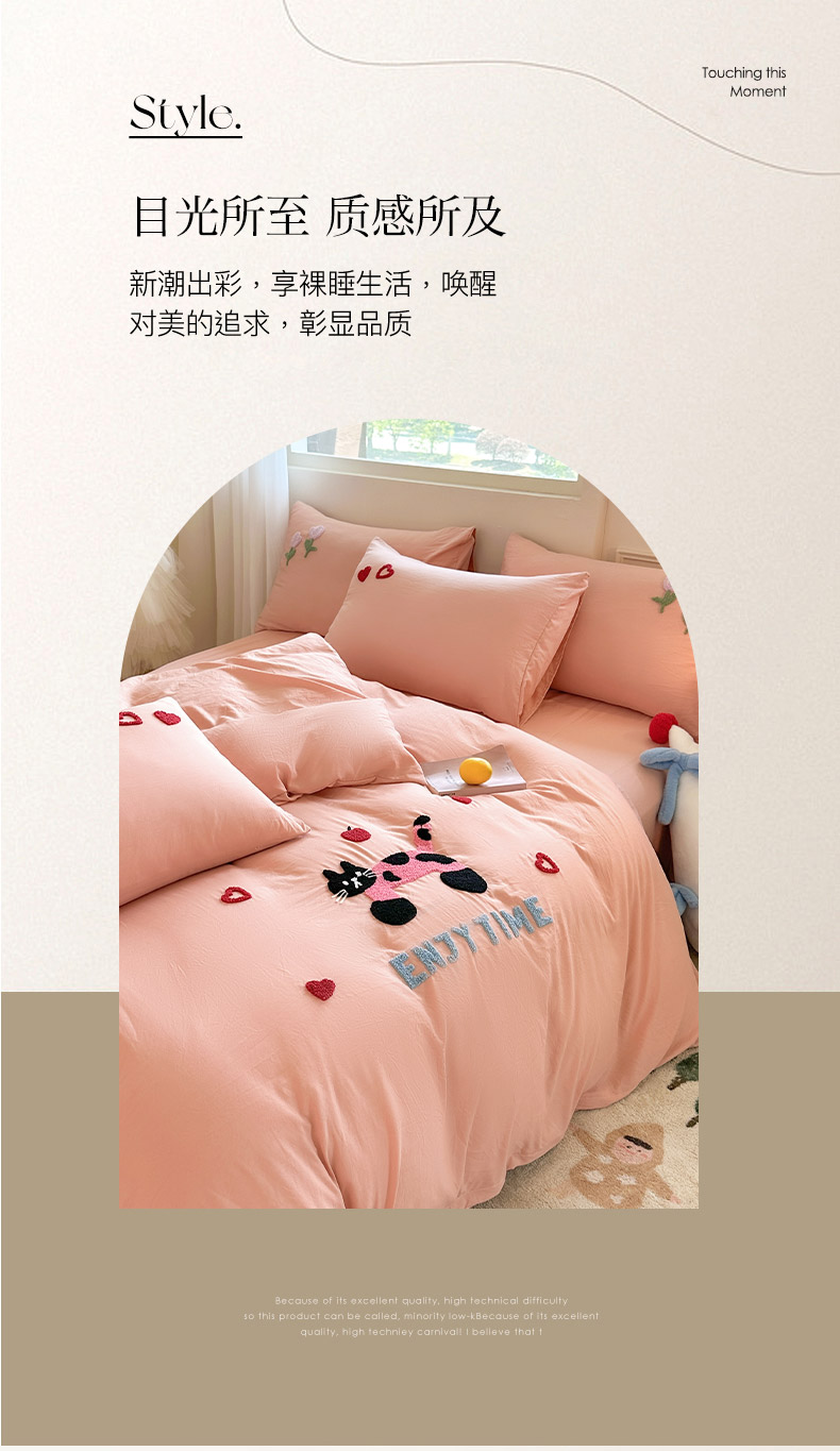 (总)合欢(原天一阁) 2025新款A类高克重全消光韩版牛奶绒刺绣四件套-千姿,千姿 湖绿,千姿 浅豆沙,千姿 天蓝,千姿 原木色