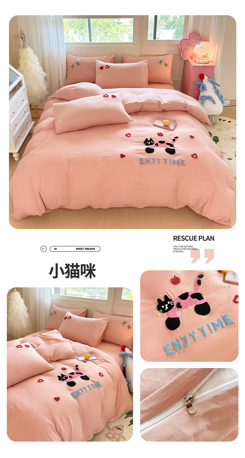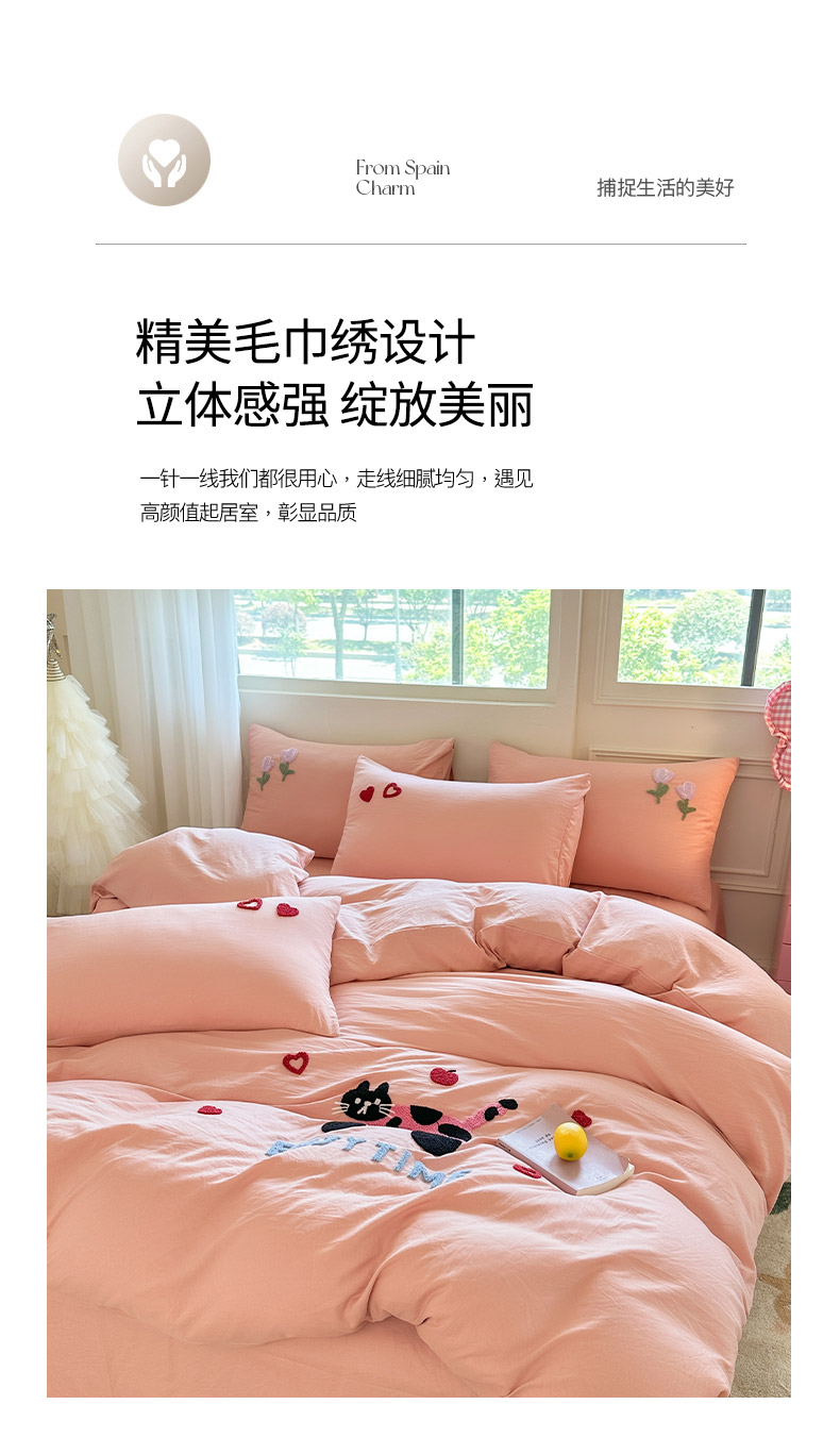 商品名称:天一阁 2024新款加厚水洗棉毛巾绣四件套学生季学生三件套 小猫咪