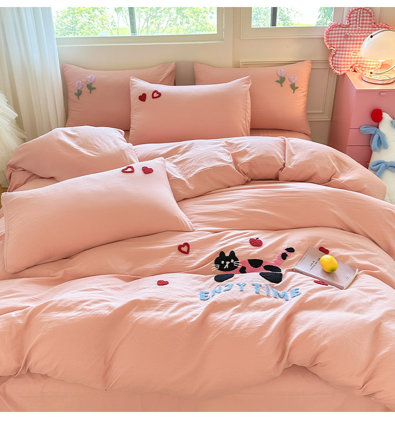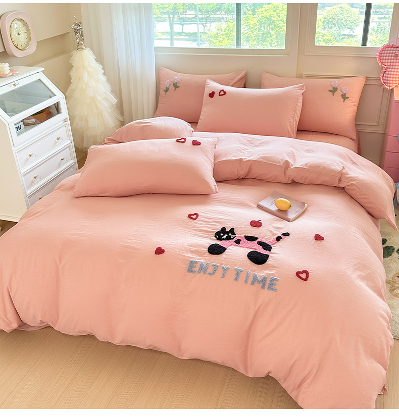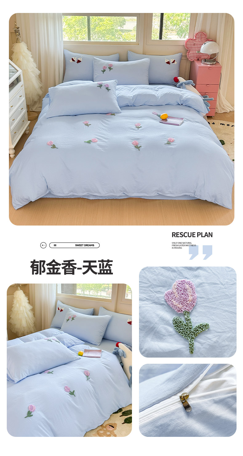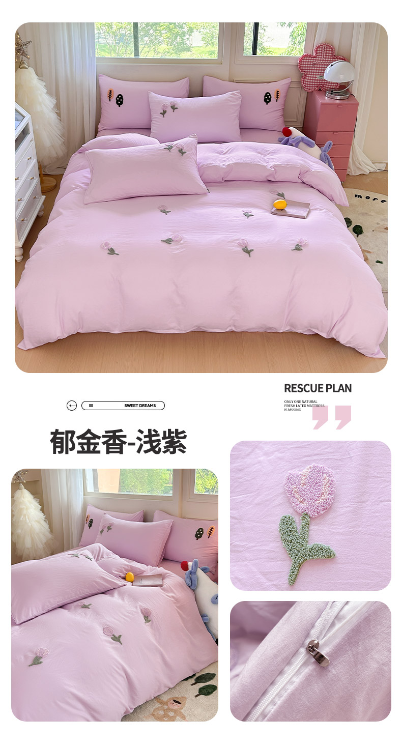 (总)合欢(原天一阁) 2025新款A类高克重全消光韩版牛奶绒刺绣四件套-郁金香,郁金香-奶油黄,郁金香-豆沙,郁金香-嫩绿,郁金香-浅粉,郁金香-天空蓝,郁金香-优雅紫