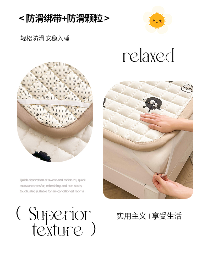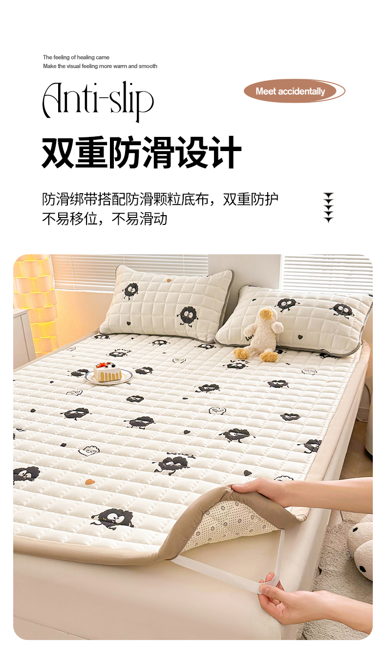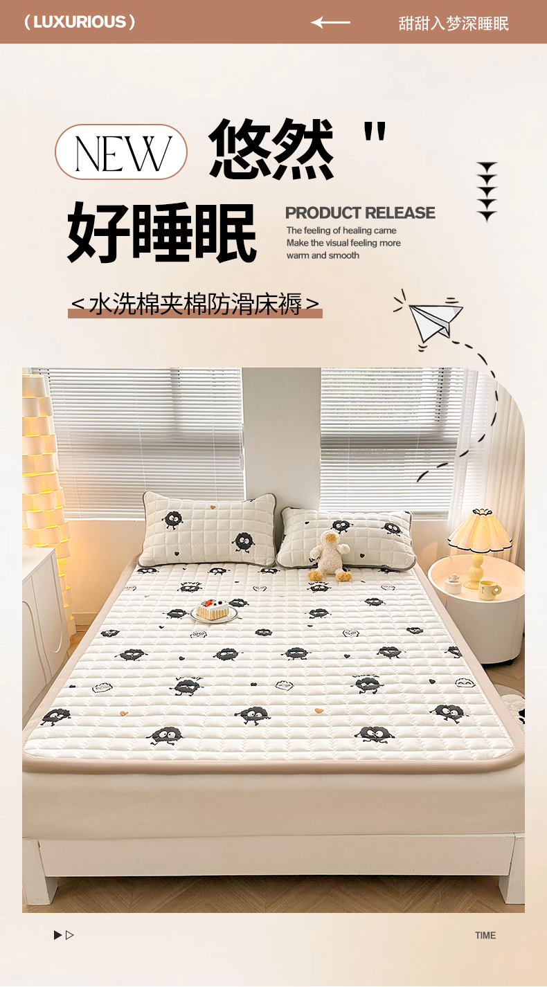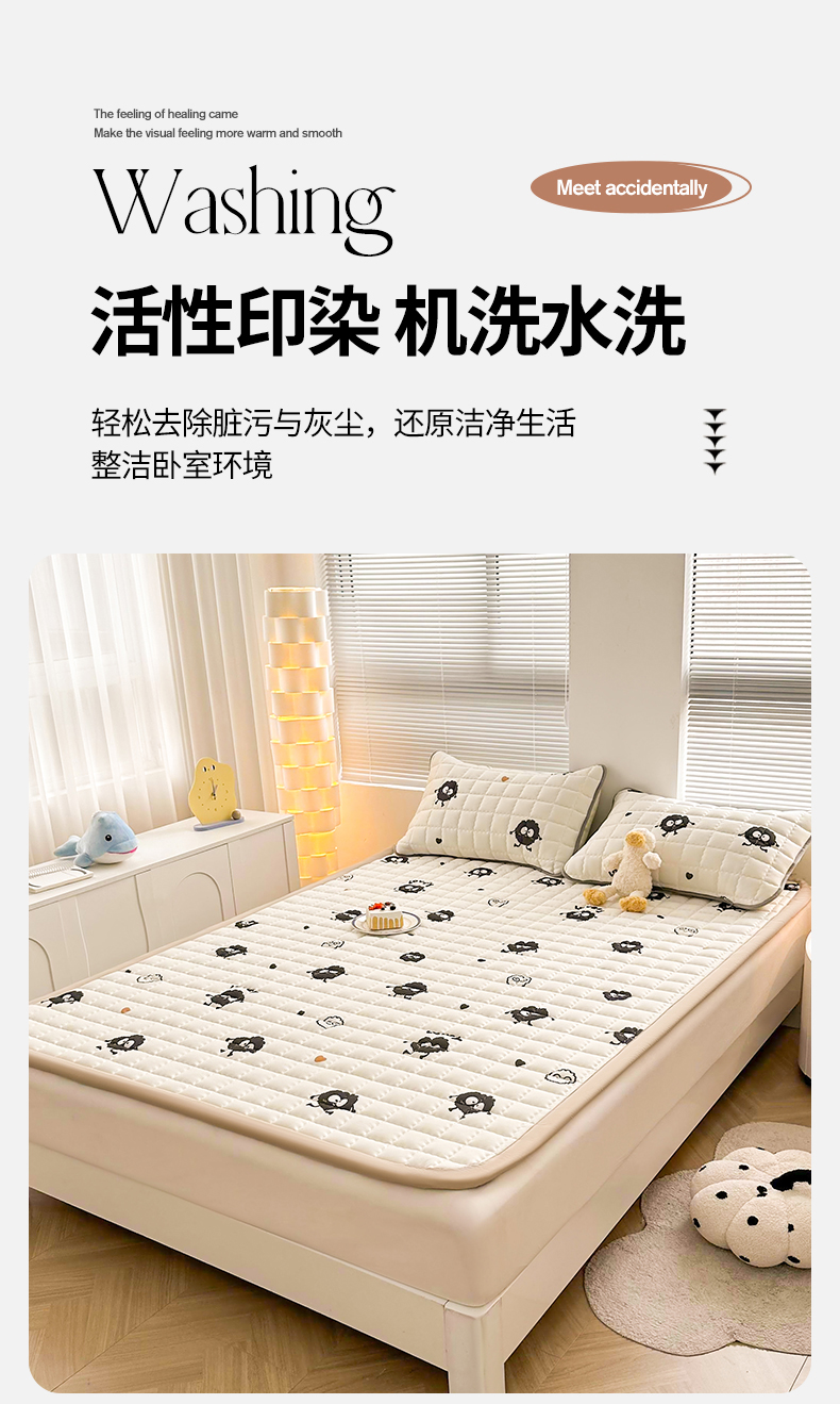 (总)花言狐语 2025新款水洗棉加厚夹棉防滑床褥子(印花系列)-大床