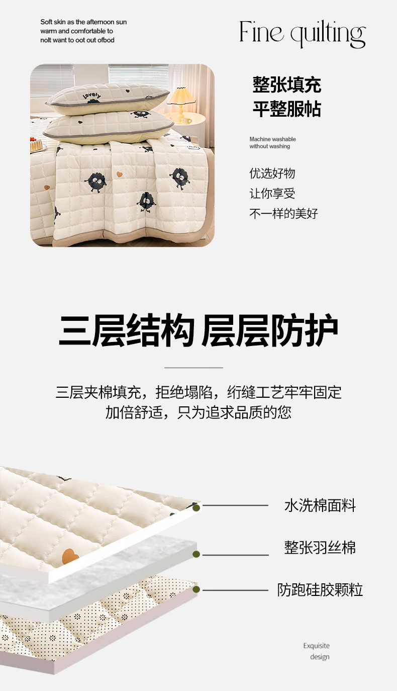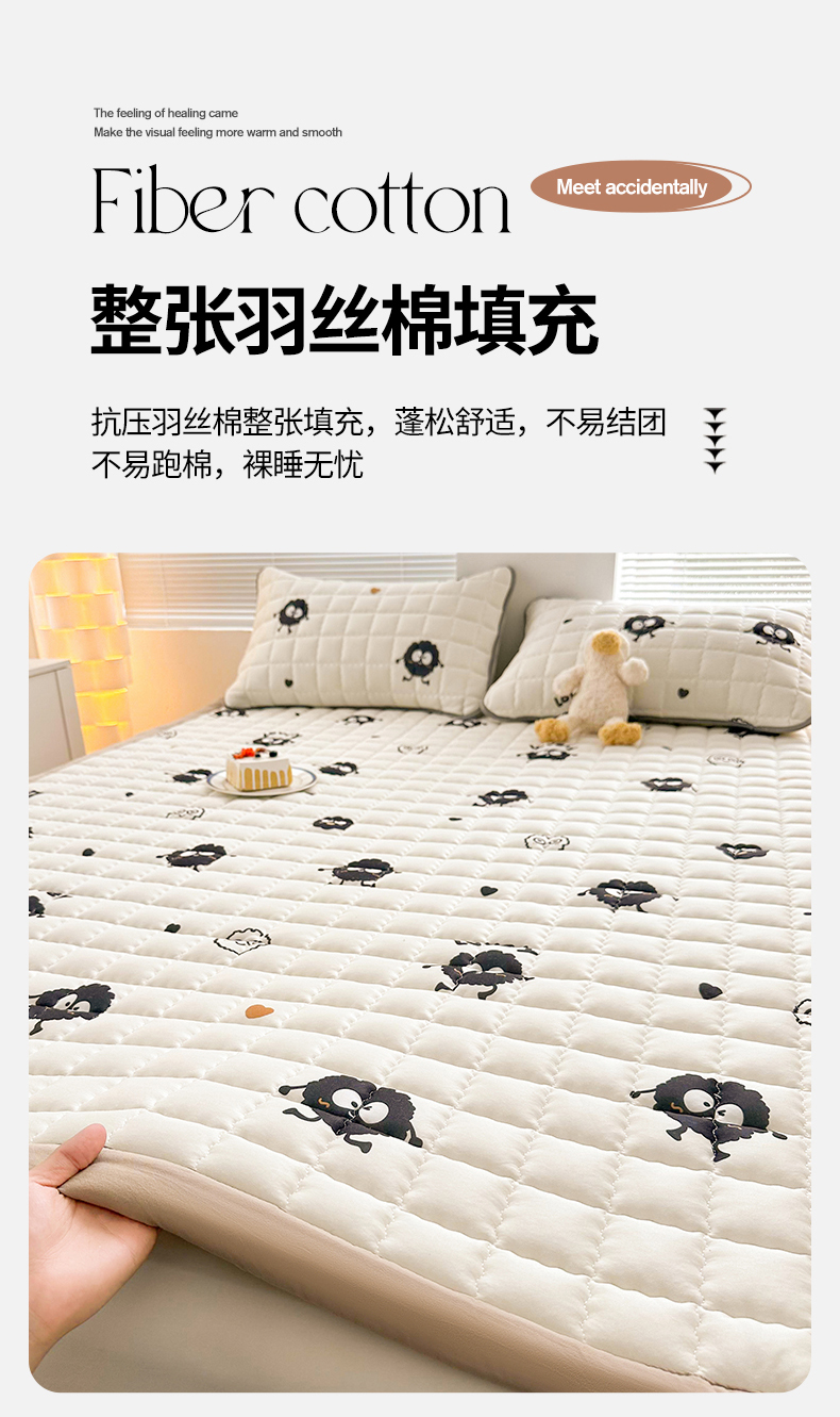商品名称:(总)花言狐语 2025新款水洗棉加厚夹棉防滑床褥子(印花系列)-大床
