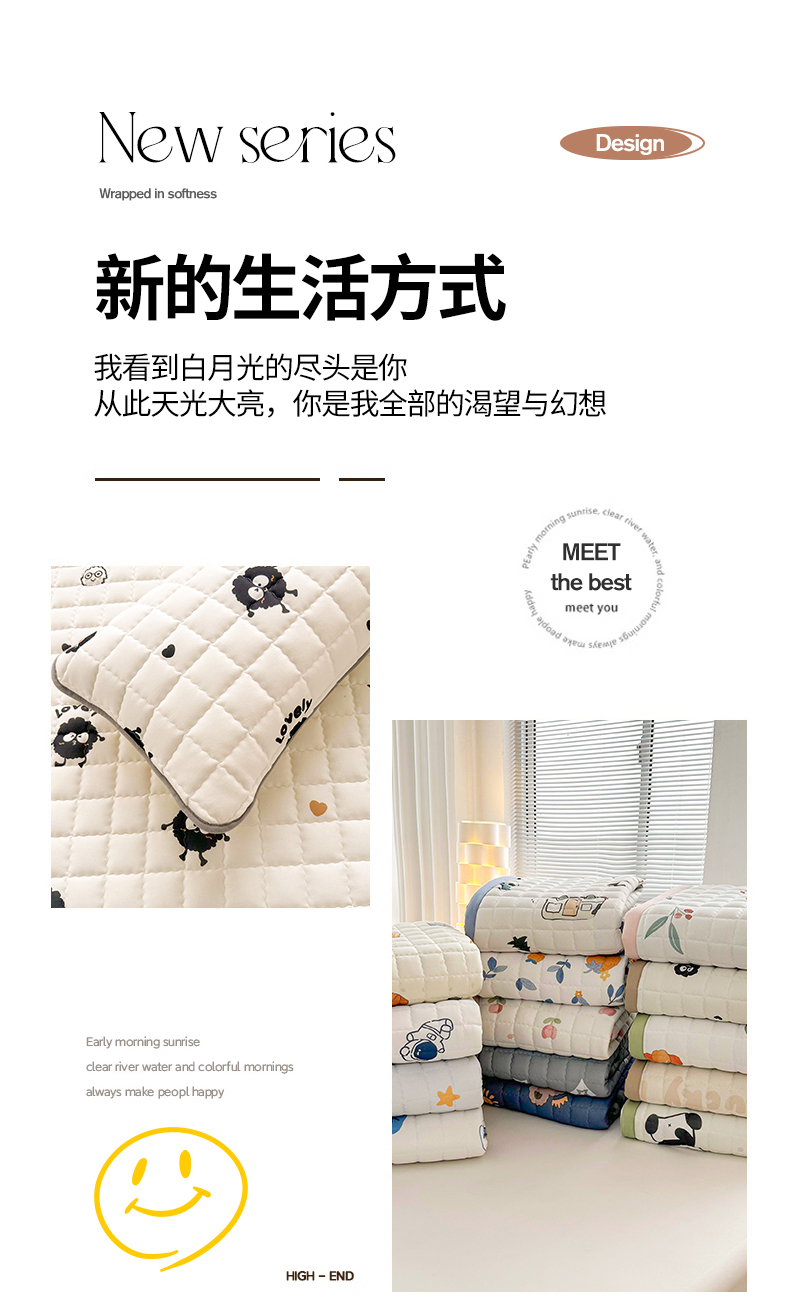 (总)花言狐语 2025年新款A类印花防水隔尿透气夹棉床笠,爱心圈圈,春暖花开,蝶恋,粉色蝴蝶,嗨皮狗狗,蝴蝶结,嘉奈,罗马格,落叶起舞,莫奈庄园,心心相印,叶语悠然,紫郁
