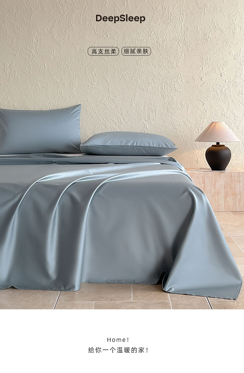 床上用品 > 床单 > Mr.pig猪先生水洗棉 2024新品 A类全棉50S贡缎长绒棉单床笠床罩纯棉床垫保护套学生宿舍三件套床上用品 清澈蓝