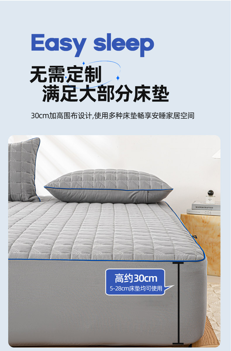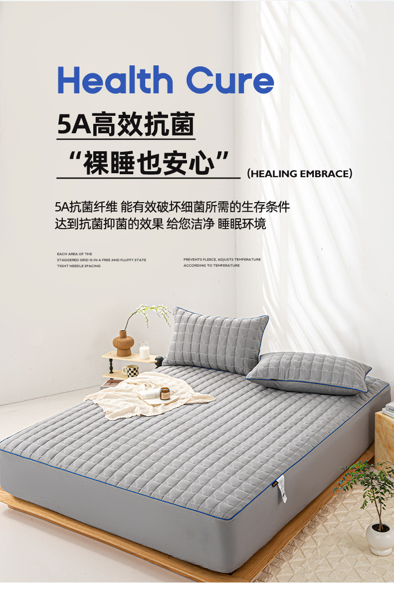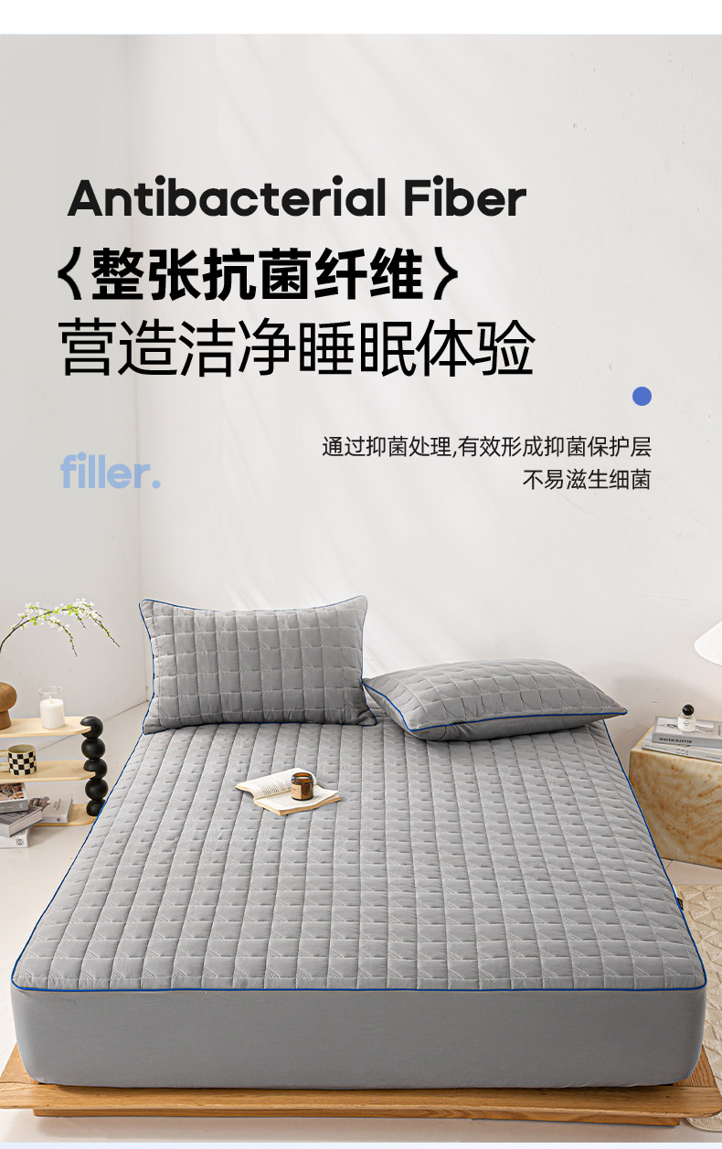 (总)好眠好梦家纺 2025新款全棉50S夹棉抗菌防螨床笠-棉生活系列,白色,粉色,卡其,深灰,天蓝,烟灰